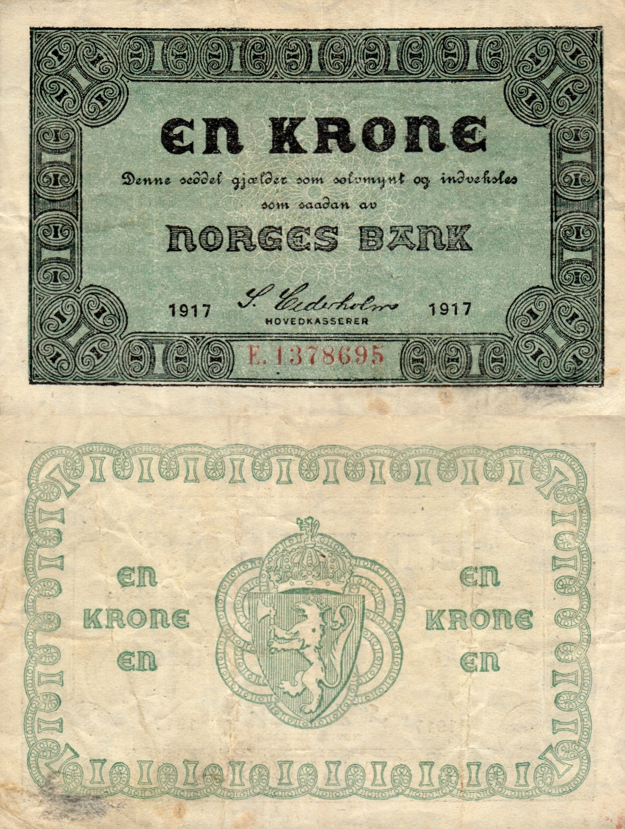 # Норвегия - 1 Корона - 1917 - P -13 - VF (префикс E)