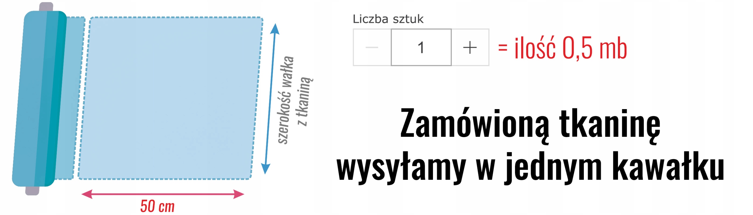 - 1 шт. = 0,5 метра = 50 x 143 см (+/- 2 см)