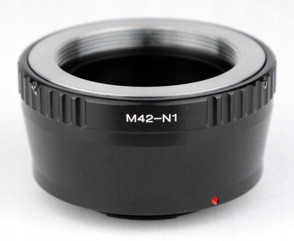 Байонетный адаптер позволяет использовать объективов с резьбой байонета М42 для корпусов камер с байонетом Nikon1, т.е. старой системы цифровых беззеркальных фотоаппаратов Nikon. Это позволяет получить доступ ко всему спектру отличных объективов с креплением с резьбой М42 в фотоаппаратах Nikon1 (N1), т.е. в системе цифровых беззеркальных фотоаппаратов Nikon. Адаптер позволяет сосредоточиться на так называемом бесконечность. У него нет корректирующей линзы, поэтому потери оптического качества нет. Прочно изготовленный, с соблюдением самых высоких стандартов производства (сочетание таких металлов, как латунь, дюралюминий и сталь), он не изготовлен из пластика или других пластмасс. Переходники этого типа не позволяют управлять функцией автофокусировки или каким-либо другим управлением с уровня камеры, потому что это «тупые» переходники (простые металлические элементы, без каких-либо электронных элементов). Управление диафрагмой и фокусировкой осуществляется вручную с помощью колец на объективе, если объектив их имеет и позволяет. Камера может настроить выдержку в соответствии с установленной на объективе диафрагмой, но это зависит от используемой системы.
