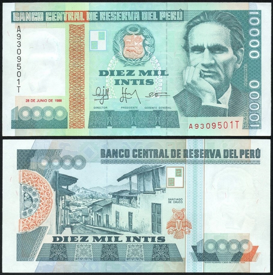 $ Перу 10 000 INTIS P-140a UNC 1988