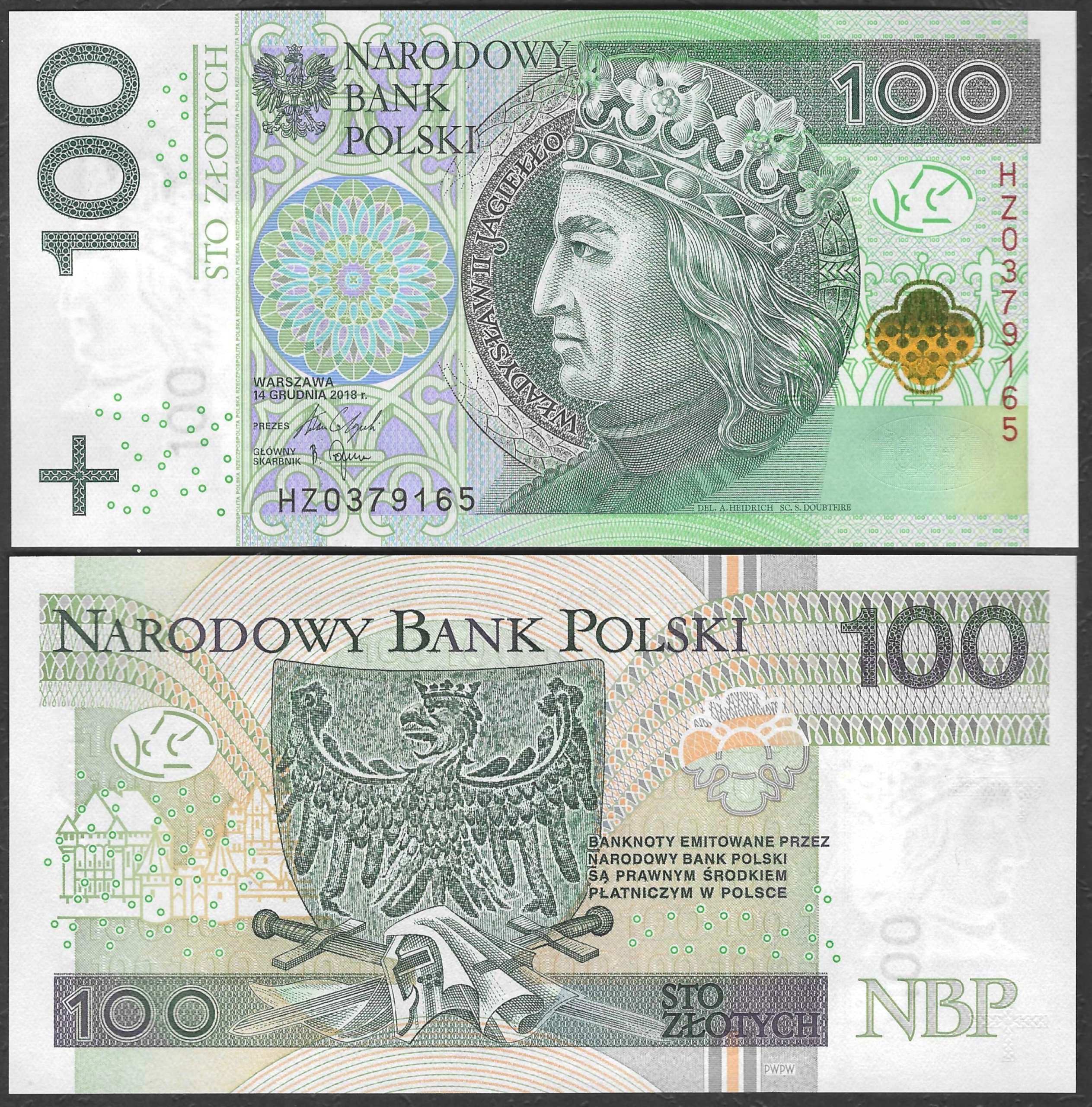 * ПОЛЬЩА 100 злотих 2018 П-186 ** стан UNC ** серія ГЦ