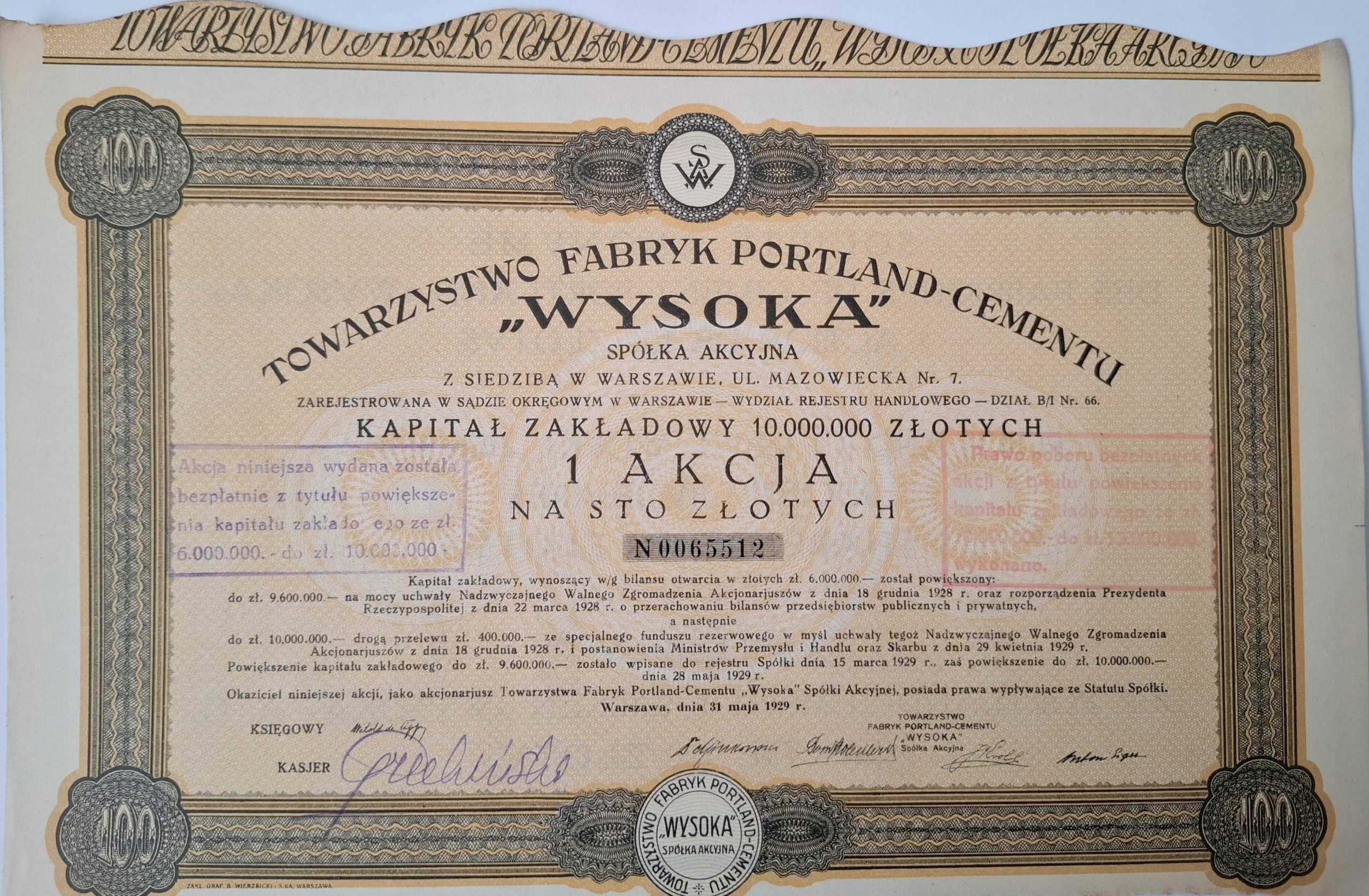 Описание: Значение, выпущенное в Варшаве, в штаб -квартире совета директоров одного из крупнейших цементных заводов в Польше, производящих свой сорт Портленда. Компания, основанная в 1885 году, в межвоенный период была одним из крупнейших производителей этого типа в Европе. После Второй мировой войны, национализированной и недавно реактивированной. Ценность в польском, английском и немецком языке на обороте. Декоративные мотивы с геометрическим и великолепным бордом . любопытство на польском антикварном рынке.