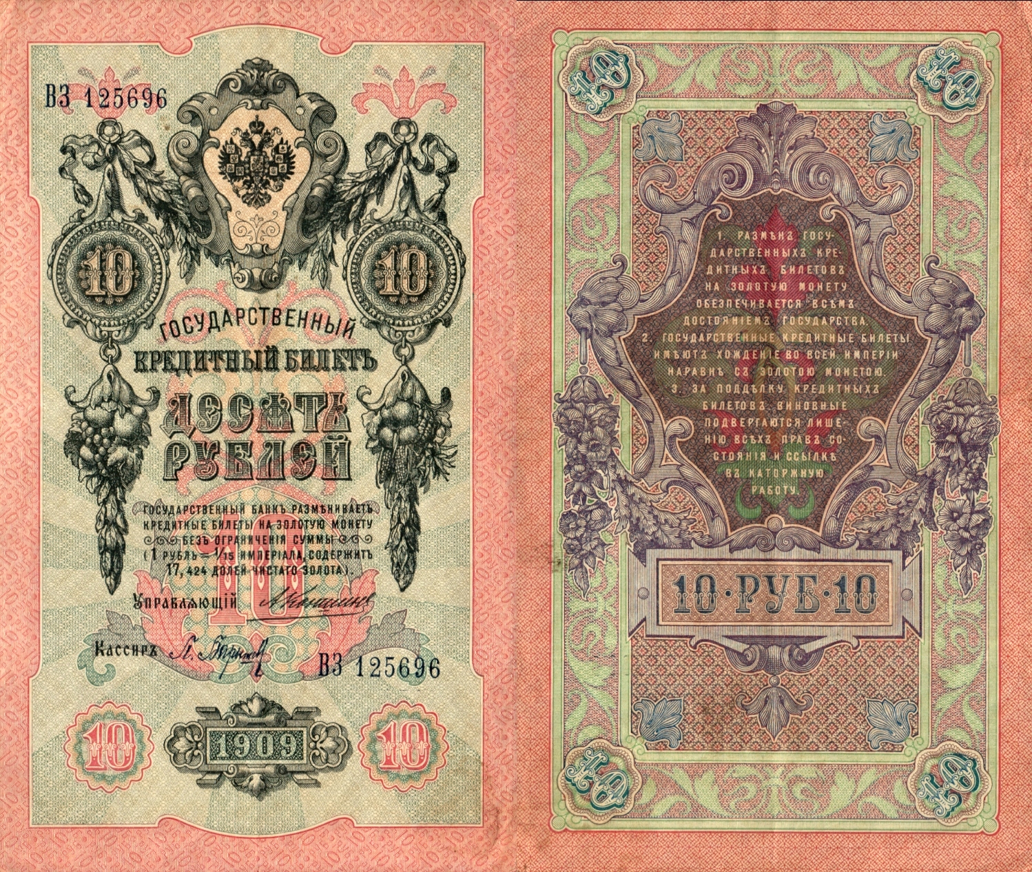 # РОСІЯ - 10 РУБ - 1909 - П-11б - ВФ (Коншин)
