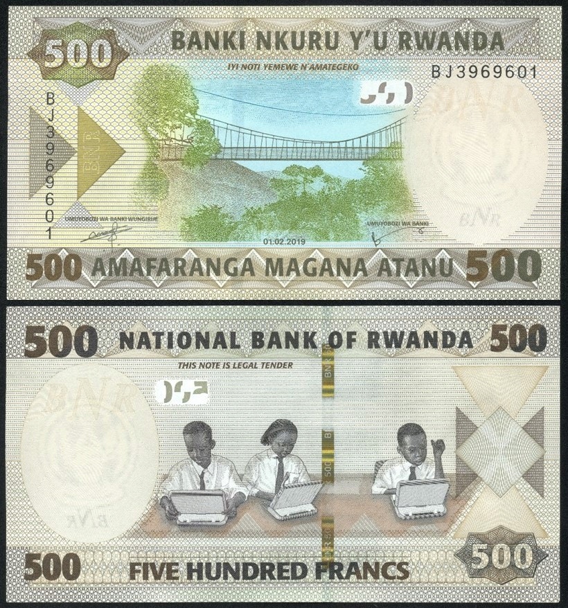 $ Rwanda 500 FRANCS P-42a UNC 2019