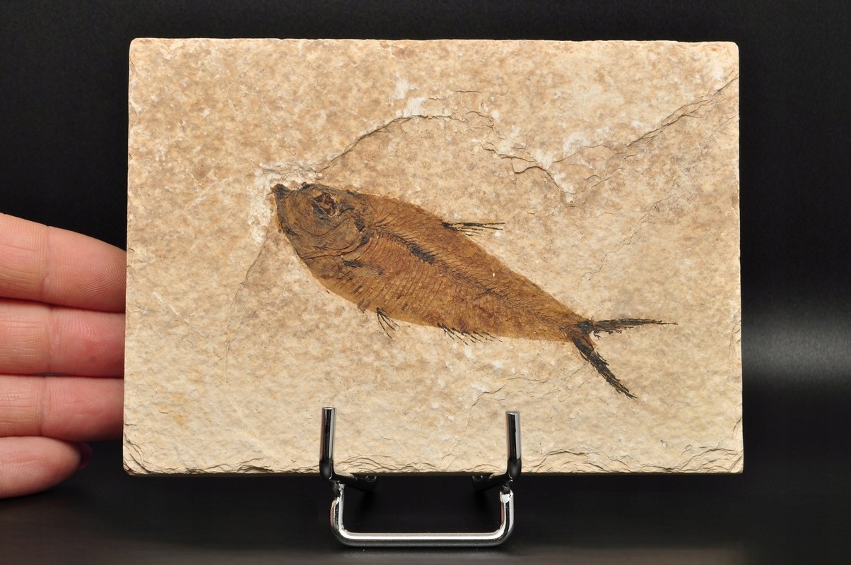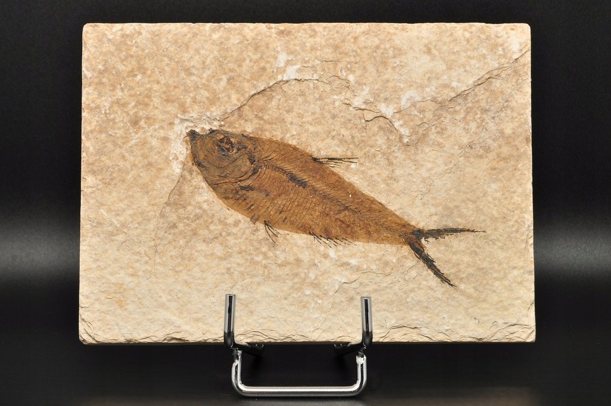 Рыба очень хорошо сохранилась (Knightia Eoceana) в тромбоцитах. Этот образец имеет окрашенные плавники и хвост.