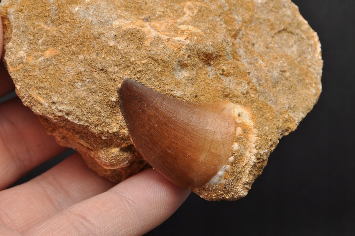 Очень хорошо сохранившийся зуб вымершего mozazura в роке, отличное качество, отлично подходит для коллекции, для подарка.