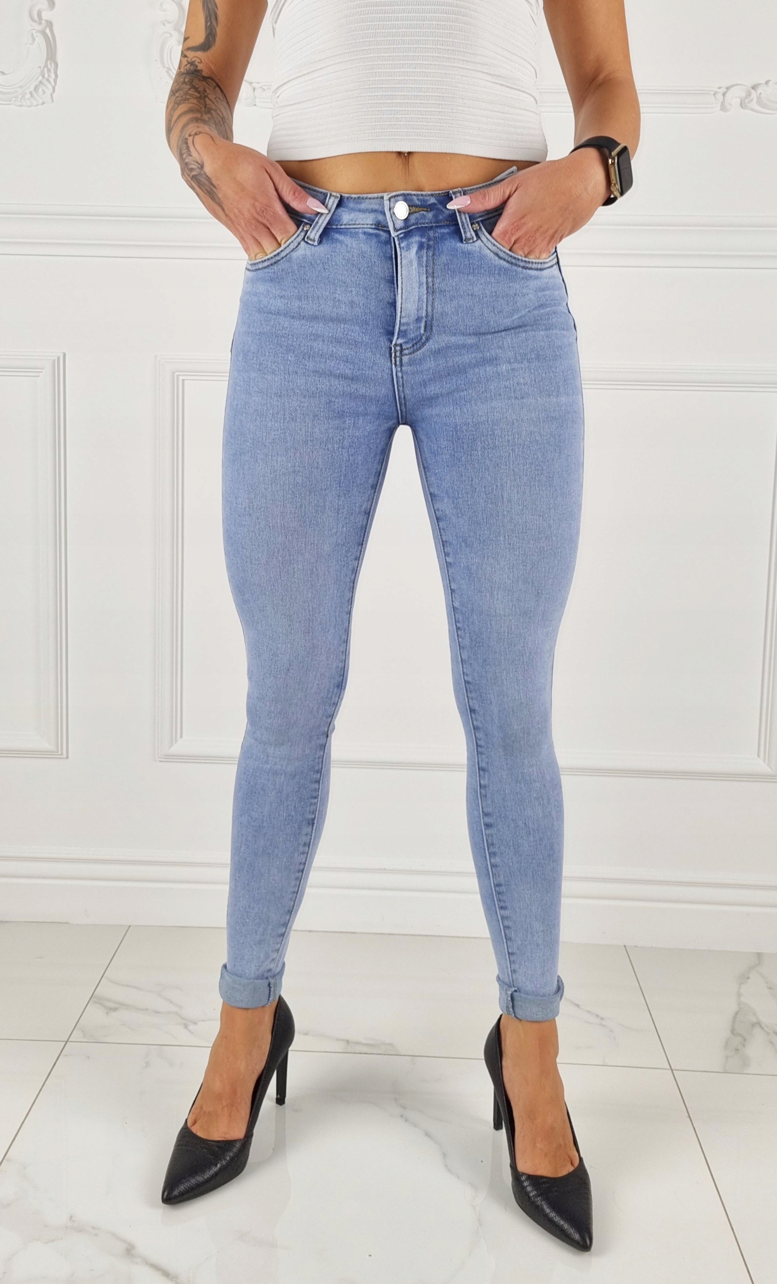 Классические джинсовые брюки известные вкусности с деликатным обтеканием, имеют среднее состояние. Гибкий материал подчеркивает женскую фигуру. Штаны установлены, растягиваются. Подчеркните свои женские формы! Сделайте свой ежедневный вид уникальным. Брюки с обеих сторон имеют карманы.