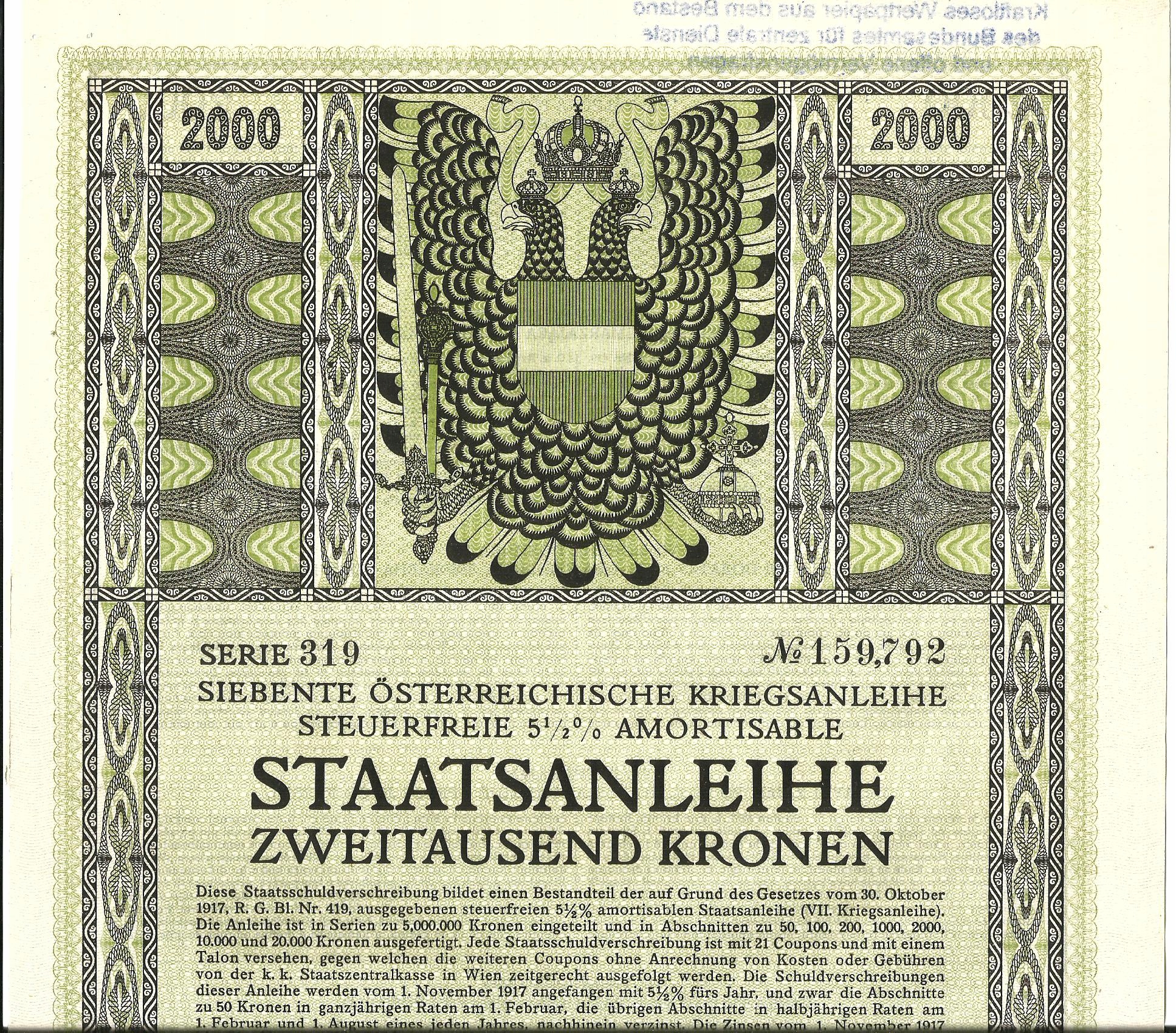 ! Седьмой К.К. Австрийский 5,5 % военный кредит! Две тысячи коронок! 1917 год!