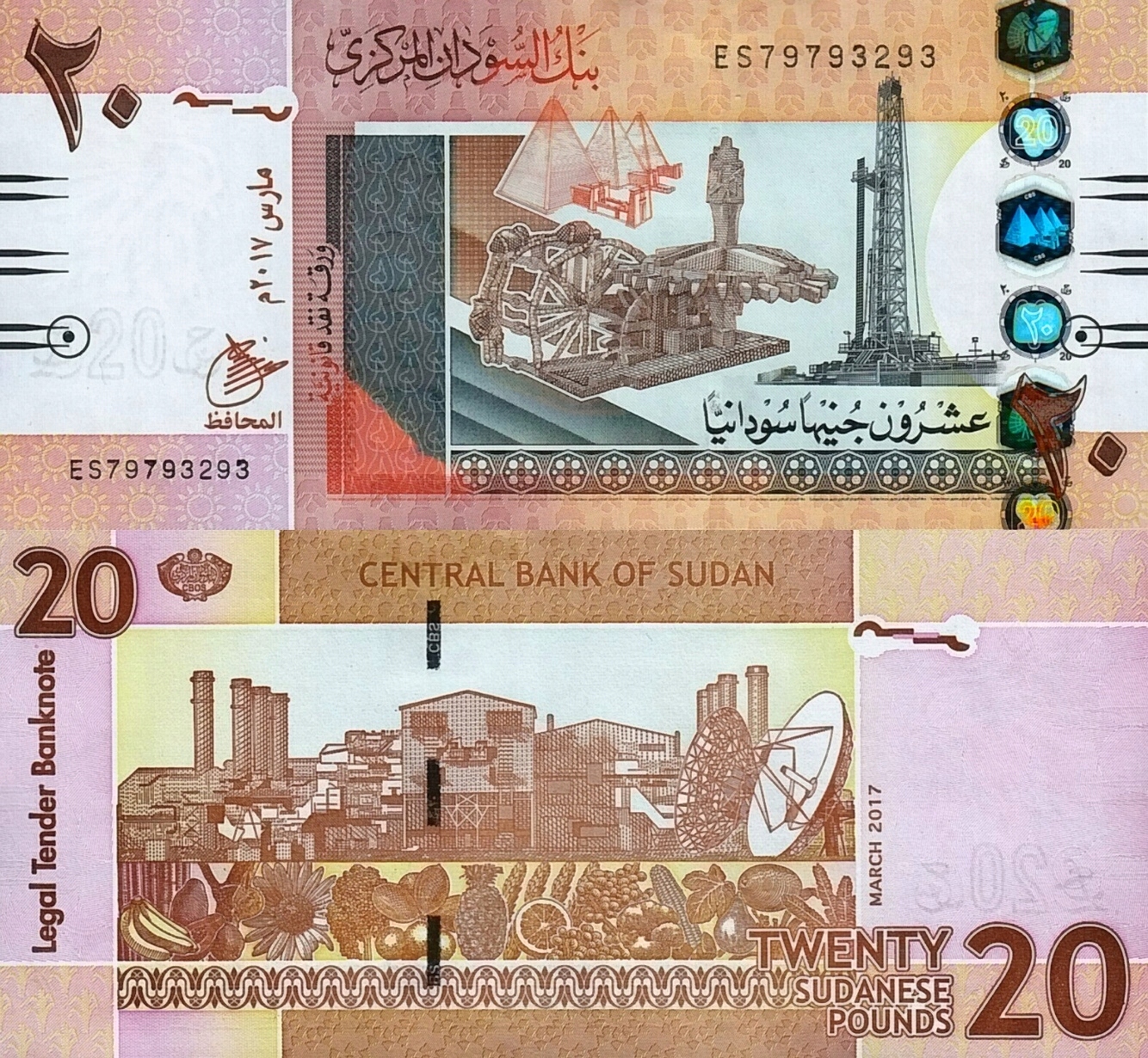 # СУДАН – 20 ФУНТОВ – 2017 г. – P-74d – UNC
