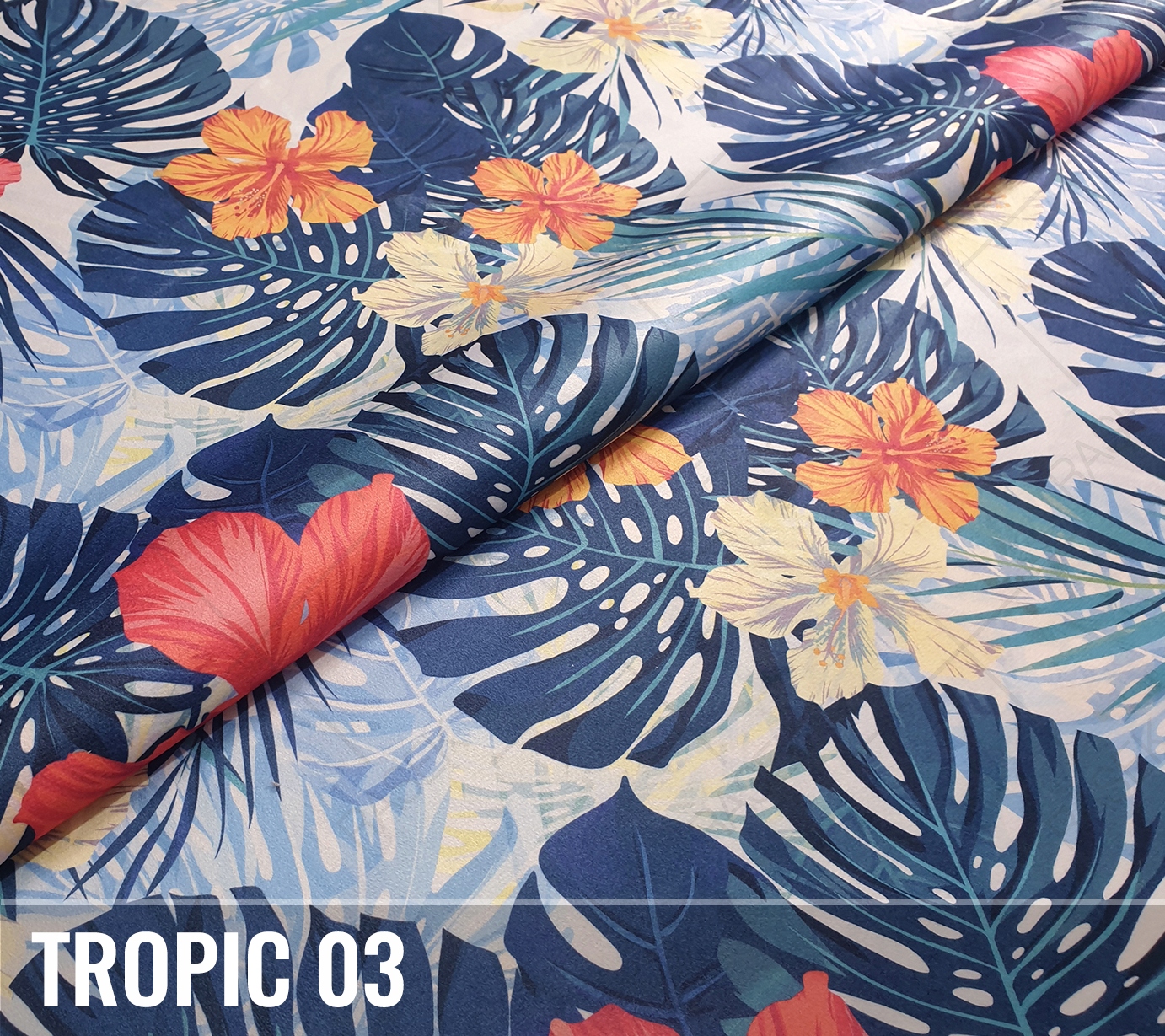 Ткань TROPIC — привлекательный листовой и цветочный принт на ткани SWEET. Популярная обивочная ткань велюр (обивочная, мебельная). Его характерной особенностью является нежная структура – мягкая и приятная на ощупь. Он слегка оттеняется в зависимости от прически. Он популярен благодаря своему тонкому и элегантному блеску, а также долговечности и стойкости. Устойчив к истиранию, скатыванию и свету!