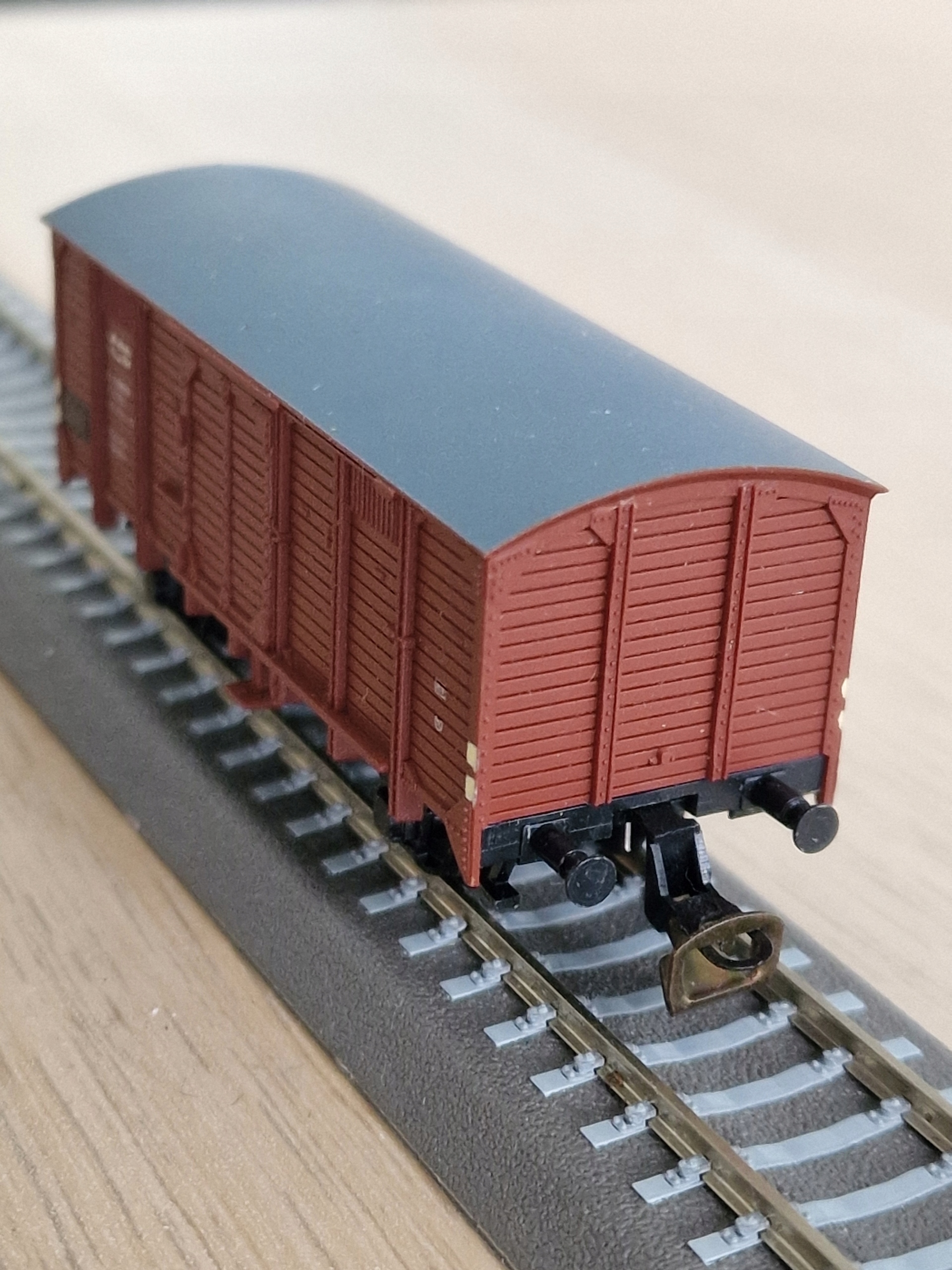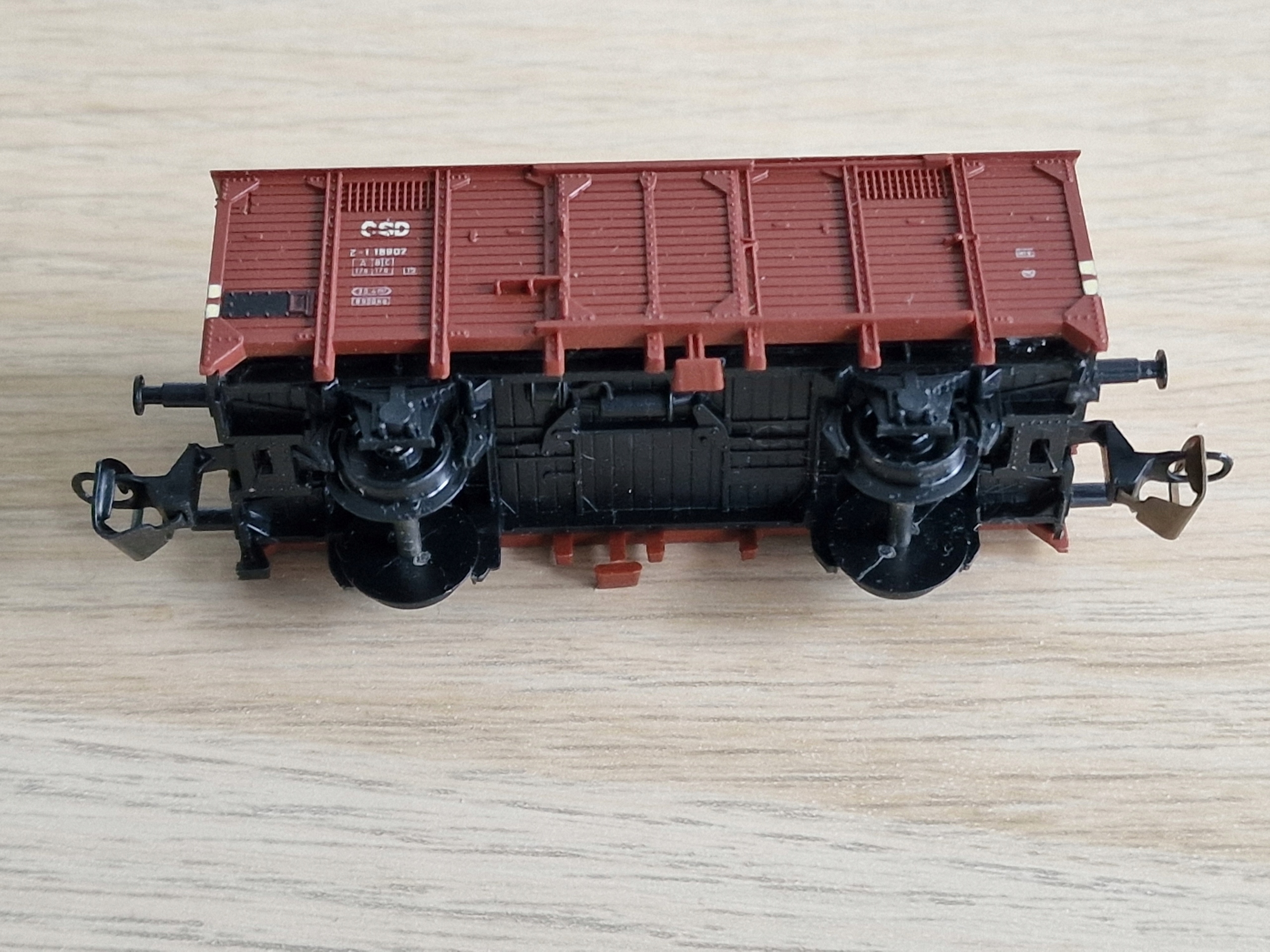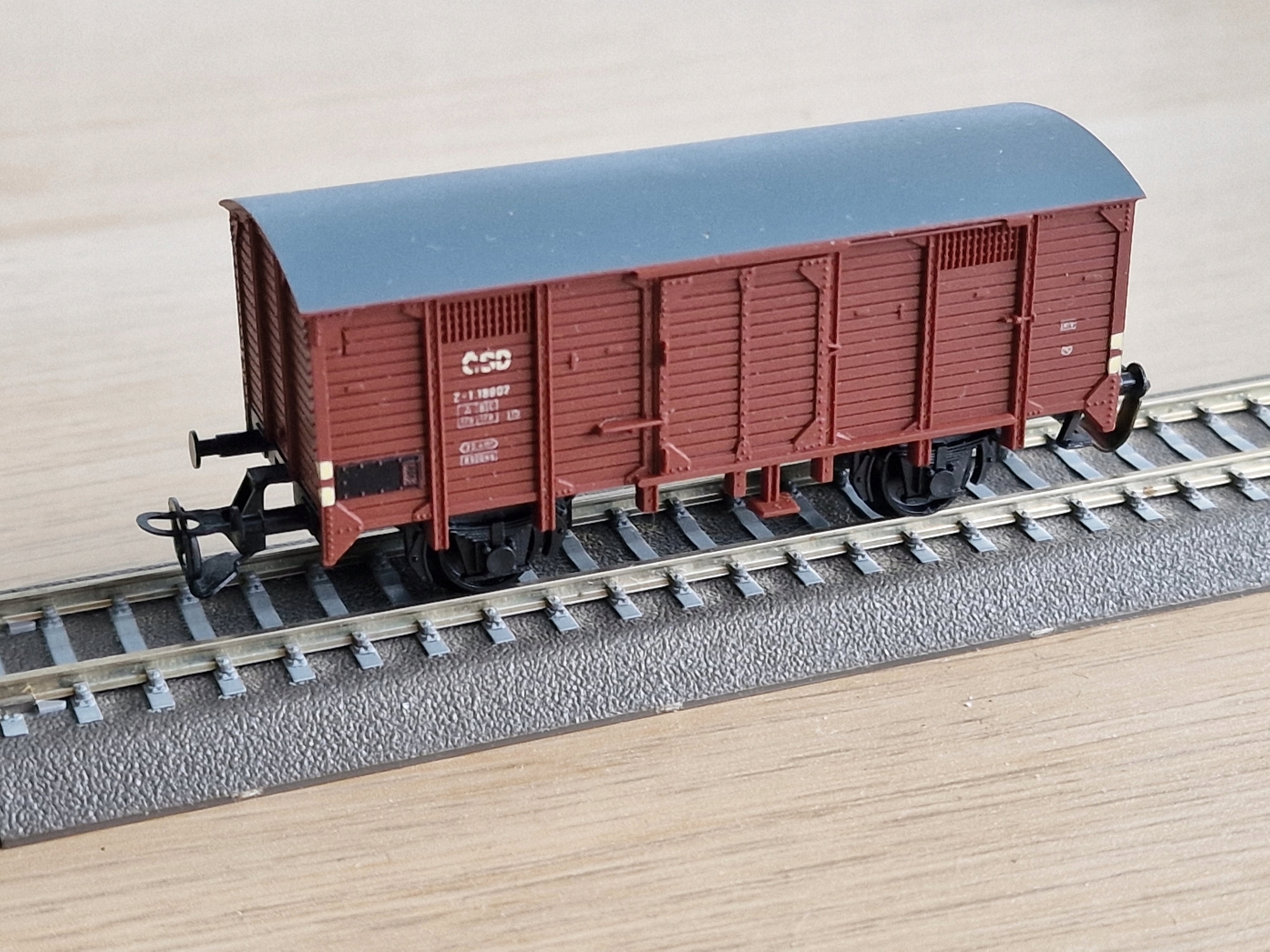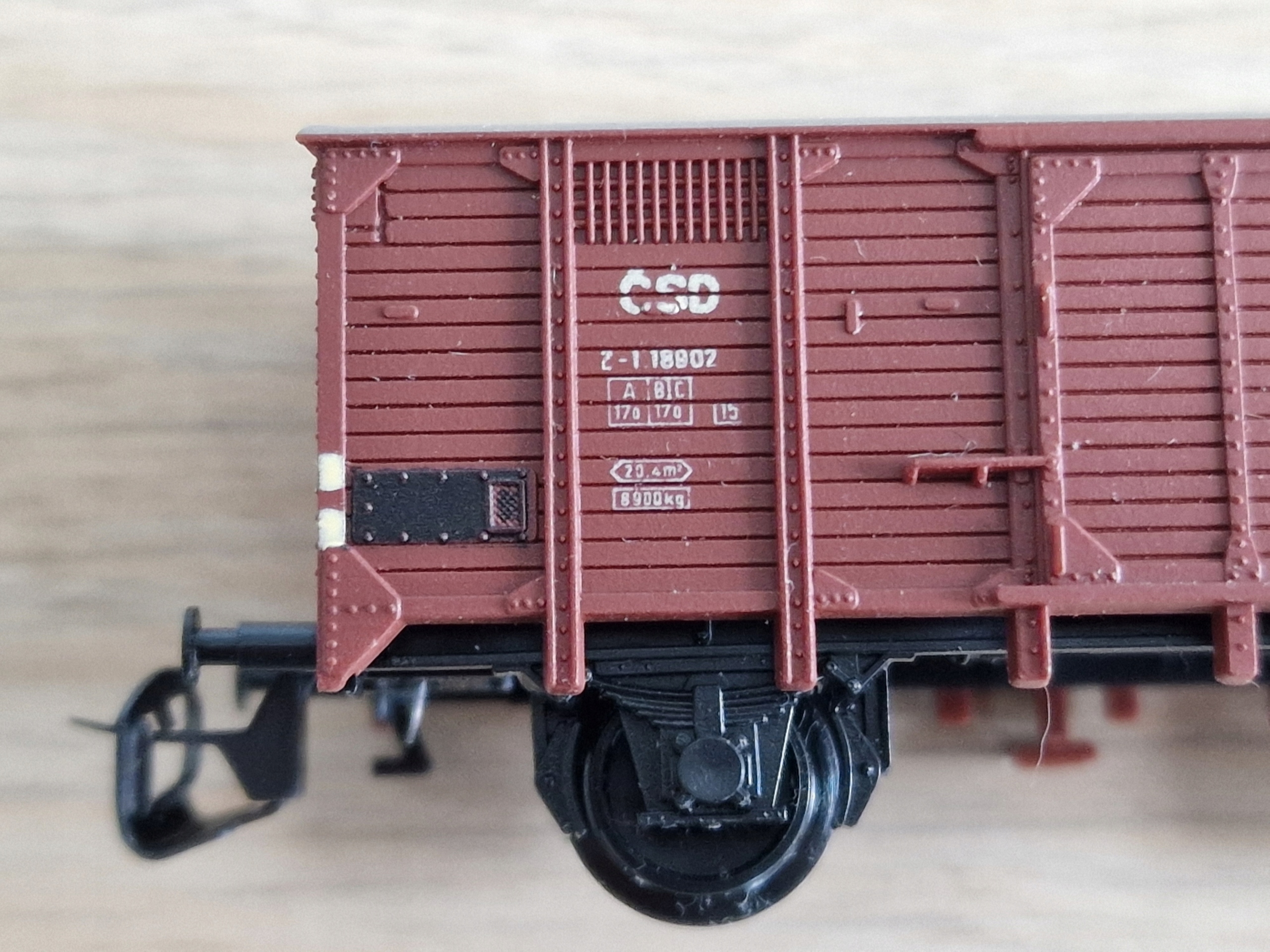 ...двухосный крытый вагон деревянной конструкции с маркировкой ЦЖД железнодорожного управления, масштаб ТТ (1:120). Модель от Berliner TT Bahnen. Модель б/у, состояние очень хорошее. Бамперы в сборе, муфты в сборе, пластиковые колеса чистые. Упаковка создана для безопасной транспортировки.