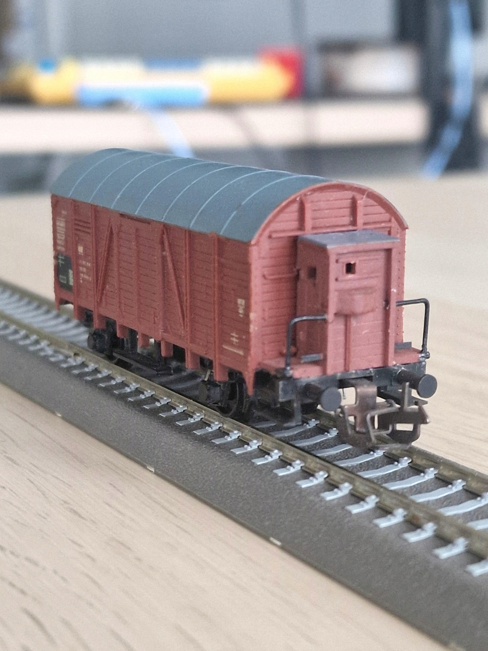 ...двухосный крытый вагон с полукруглой крышей и тормозной колодкой в маркировке Управления железных дорог ДР, масштаб ТТ (1:120). Модель Зеуке ТТ. Модель б/у, состояние хорошее плюс. Переделаны поручни задней платформы. Незначительные следы использования. Бамперы в сборе, муфты в сборе, чистые пластиковые колеса. Упаковка создана для безопасной транспортировки
