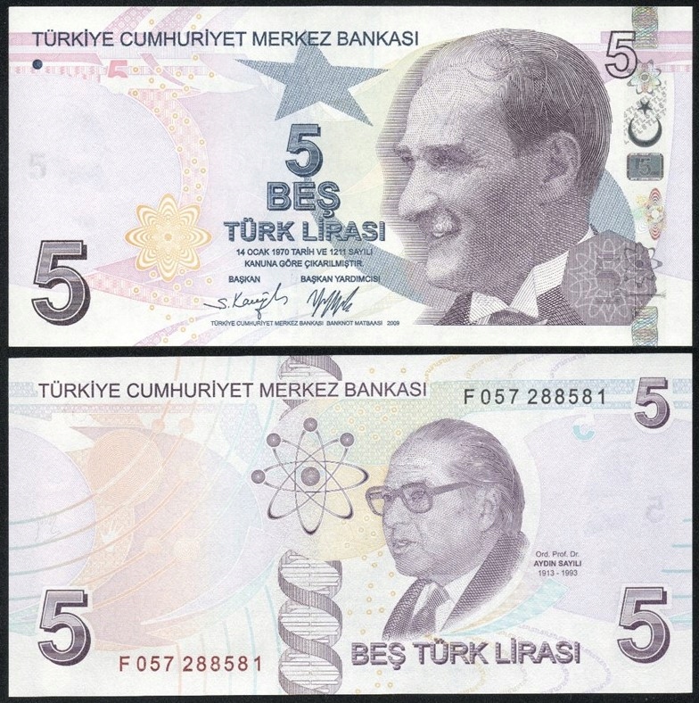 $ Туреччина 5 ЛІРАСІ П-222ф UNC 2009/2022