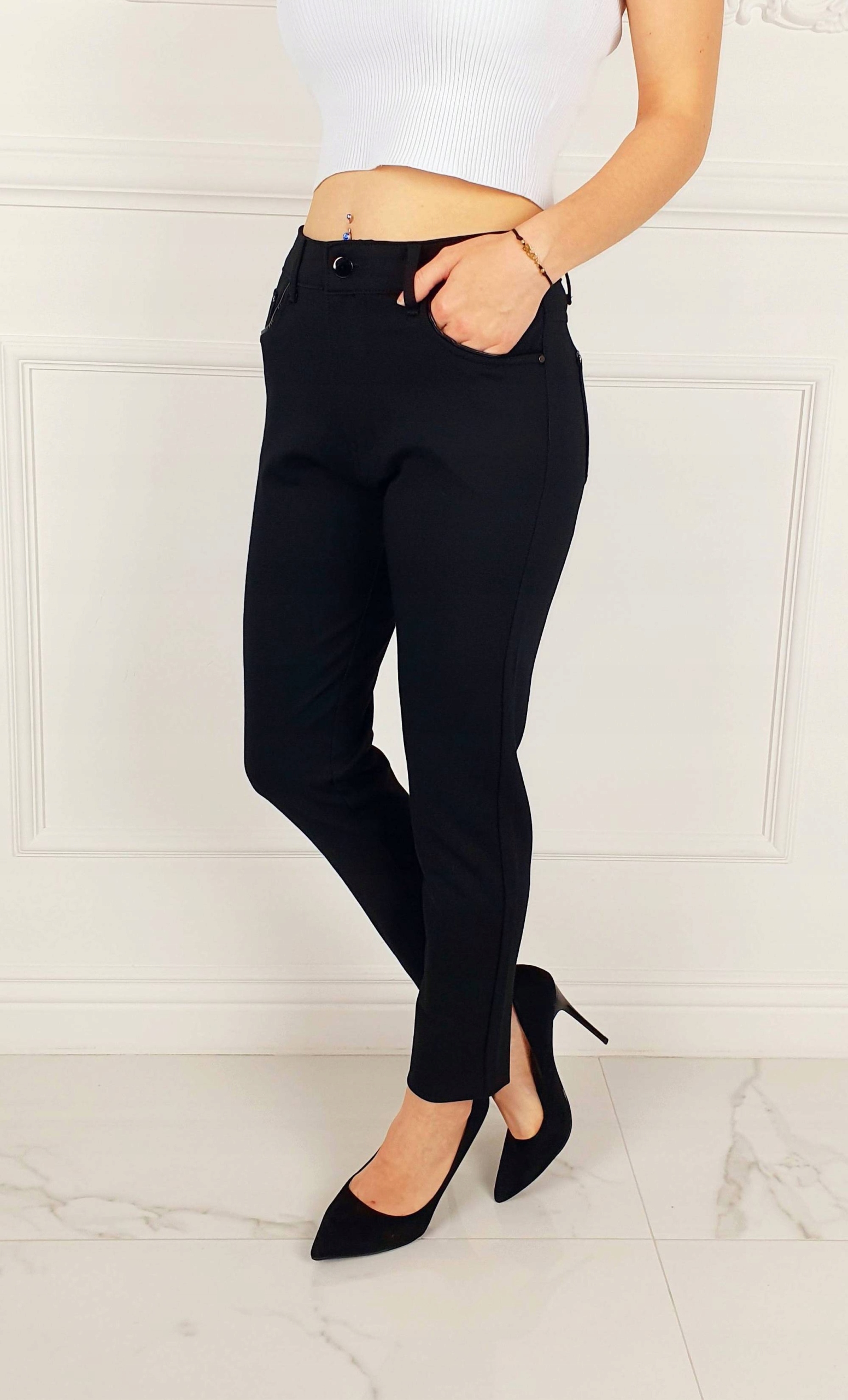 Отличные классические моделирующие фигуру брюки, с высокой талией. Они идеально сочетаются с обувью на высоком каблуке, а благодаря своей универсальности подходят практически к любому стилю. Гибкий материал подчеркивает женскую фигуру. Брюки приталенные и тянутся. Подчеркните свои женственные формы! Сделайте свой повседневный образ уникальным.
