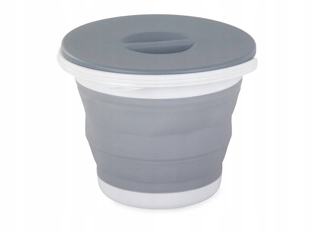 Складывание ведра с крышкой - сенсационная вещь, полезная в каждом доме. Он был сделан из прочного и толстого силикона, а дно и гора победившего пластика.