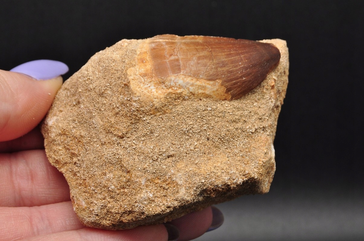 * ВИКОПЛЕНИЙ ЗУБ АНЦА МОЗАЗАВРА В СКІЛІ, ТЕМНИЙ КОЛІР, ЧУДОВИЙ ЗРАЗОК № M7 *