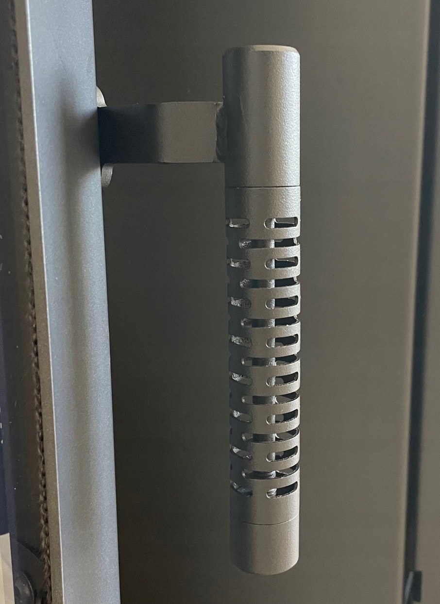 Вкладная дверь имеет современную ручку. Его особая перфорированная структура обеспечивает естественное охлаждение. Удобная ручка гарантирует удобное открывание камина.