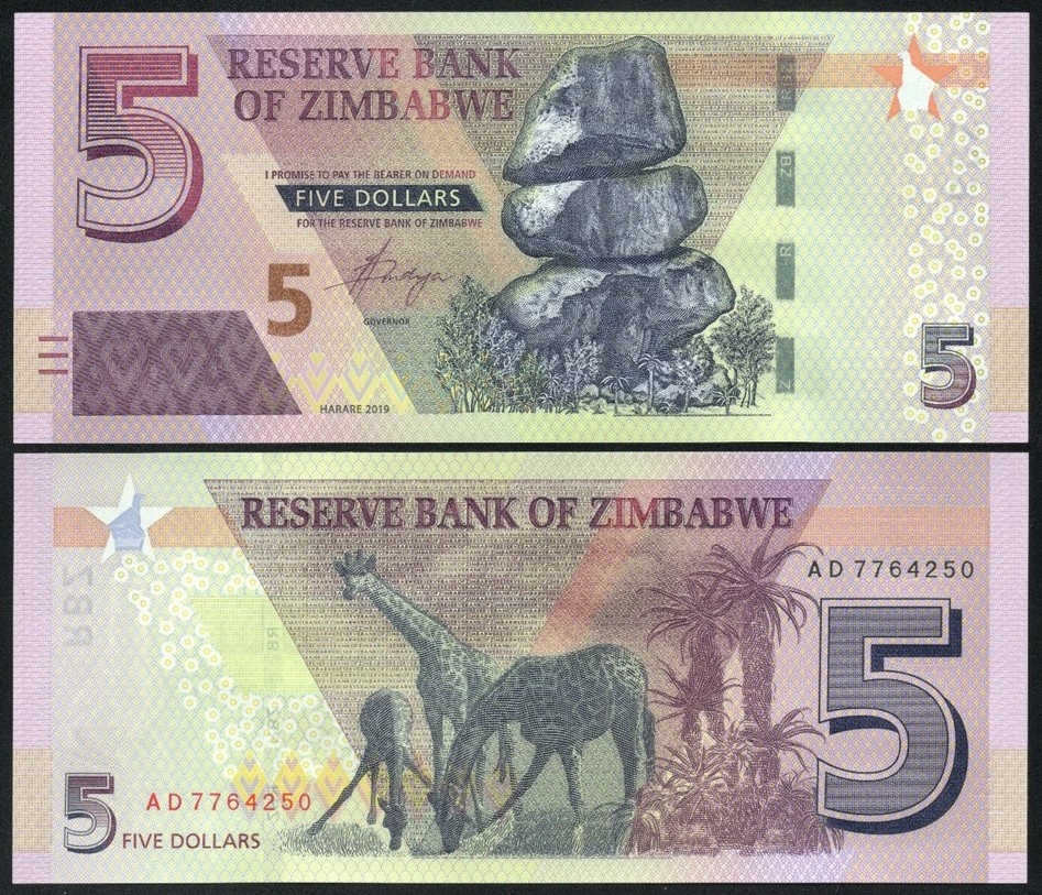 $ Zimbabwe 5 DOLLARS P-102 UNC 2019