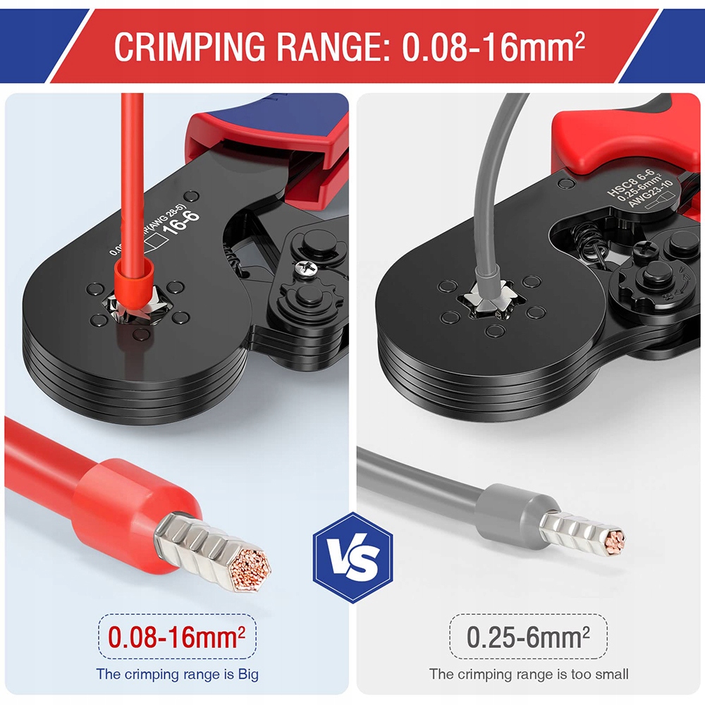 【Удобно и практично】 Практичный дизайн, небольшая ширина ручки и легкий вес. Отрегулируйте обжимные клещи, вставьте кабель в наконечник и просто затяните.