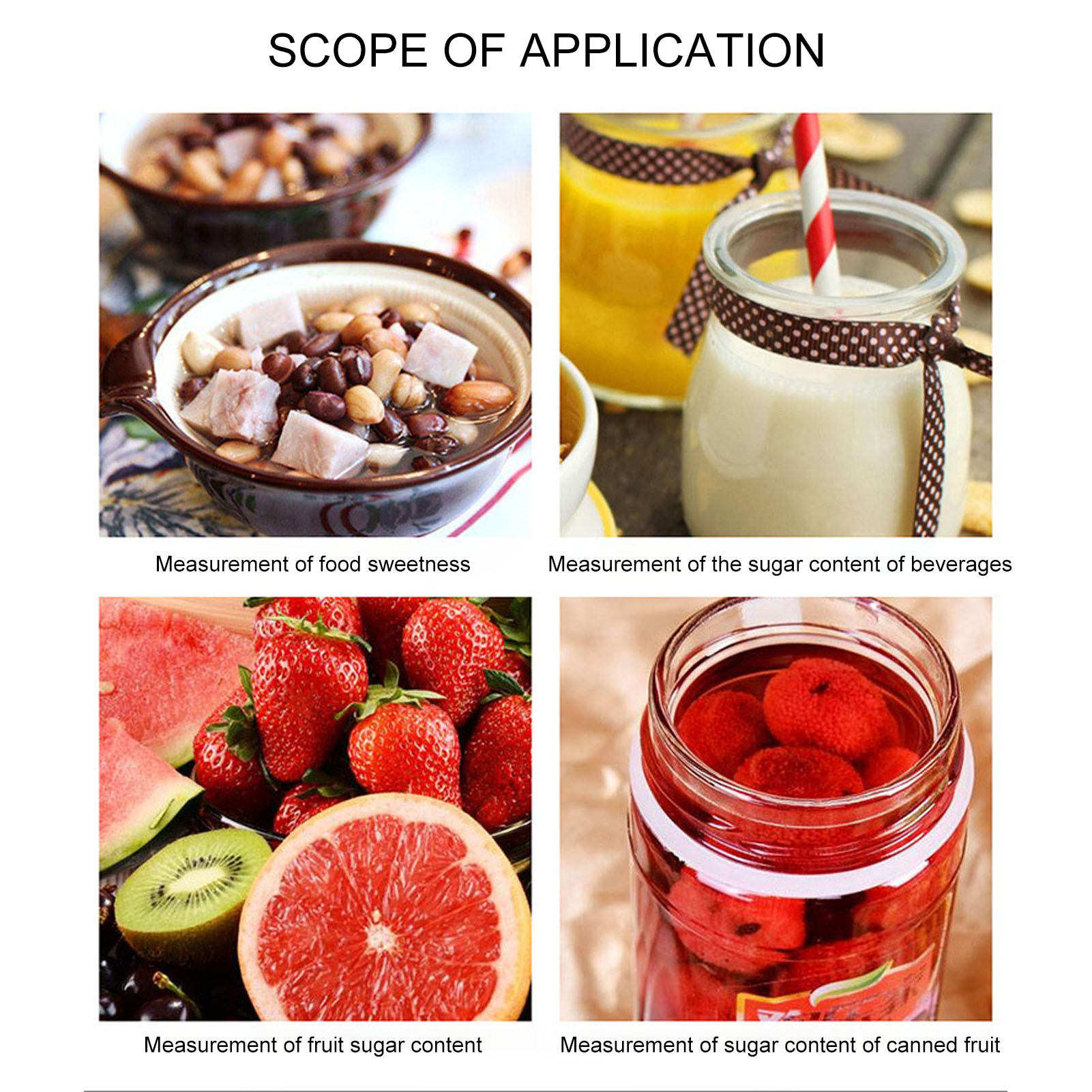 Особенность:1. ДИАПАЗОН 0-32%: Измеритель Брикса предназначен для измерения содержания сахара во фруктовых соках, фруктах, напитках в диапазоне 0-32%, для контроля спелости выращиваемых фруктов и овощей или для лабораторных исследований.