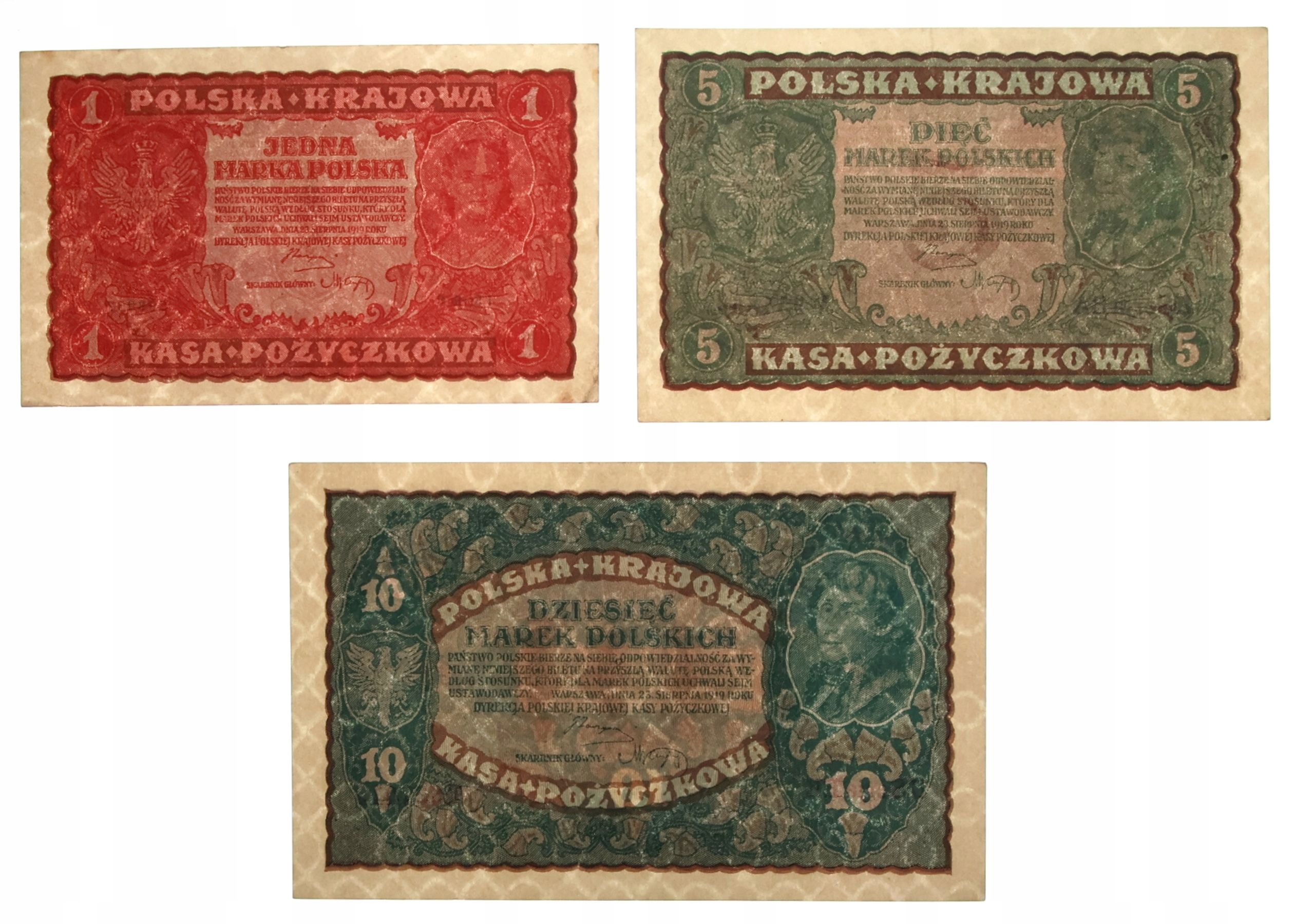 01. Вторая Польская Республика, 1-1000 польских марок 1919 года, набор из 7 штук, микс