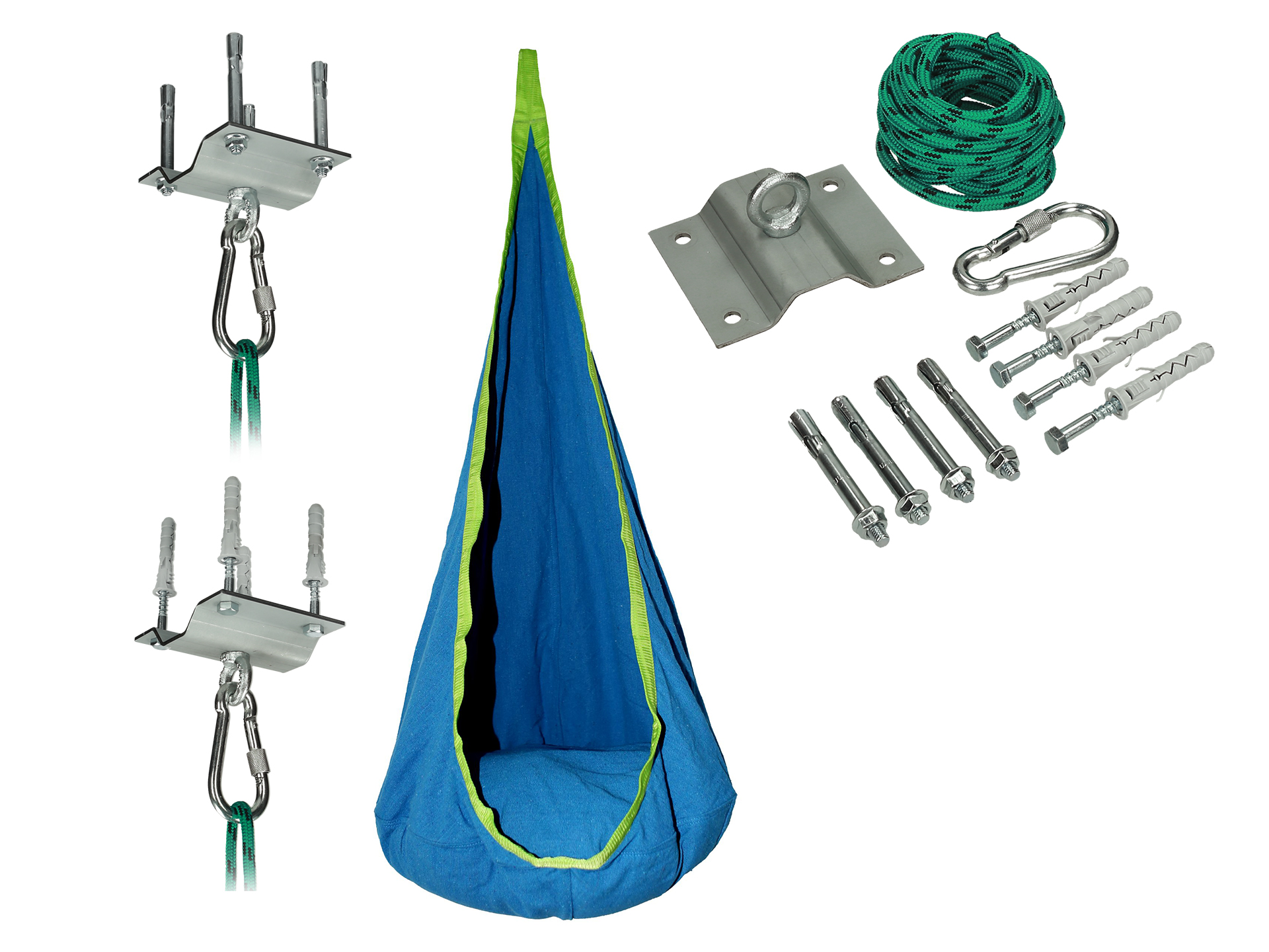 Толстая веревка с потолочным держателем, монтажной проушиной, карабином и полным набором анкеров для крепления, в частности, гамак, качели, кокон, боксерская груша и различные виды предметов, требующих подвешивания.