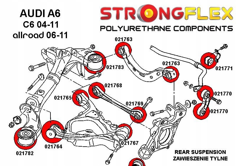 Strongflex, лидер в производстве элементов подвески полиуретанового автомобиля, революционизирует отрасль с 2000 года благодаря своим инновационным решениям. Используя новейшие полиуретановые эластомеры, которые перевешивают каучук с точки зрения прочности и гибкости, StrongFlex предоставляет своим клиентам продукты исключительного качества. Они характеризуются высокой сопротивлением динамическим нагрузкам, истиранием, разбиваемостью и трещинами, а также сохраняют свои свойства при экстремальных температурах.
