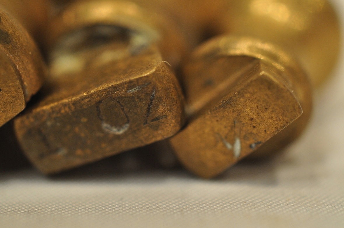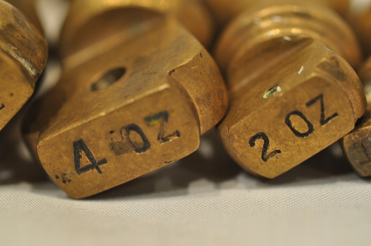Нижняя часть гирь (1 фунт-1 унция) с полыми проверочными гнездами.