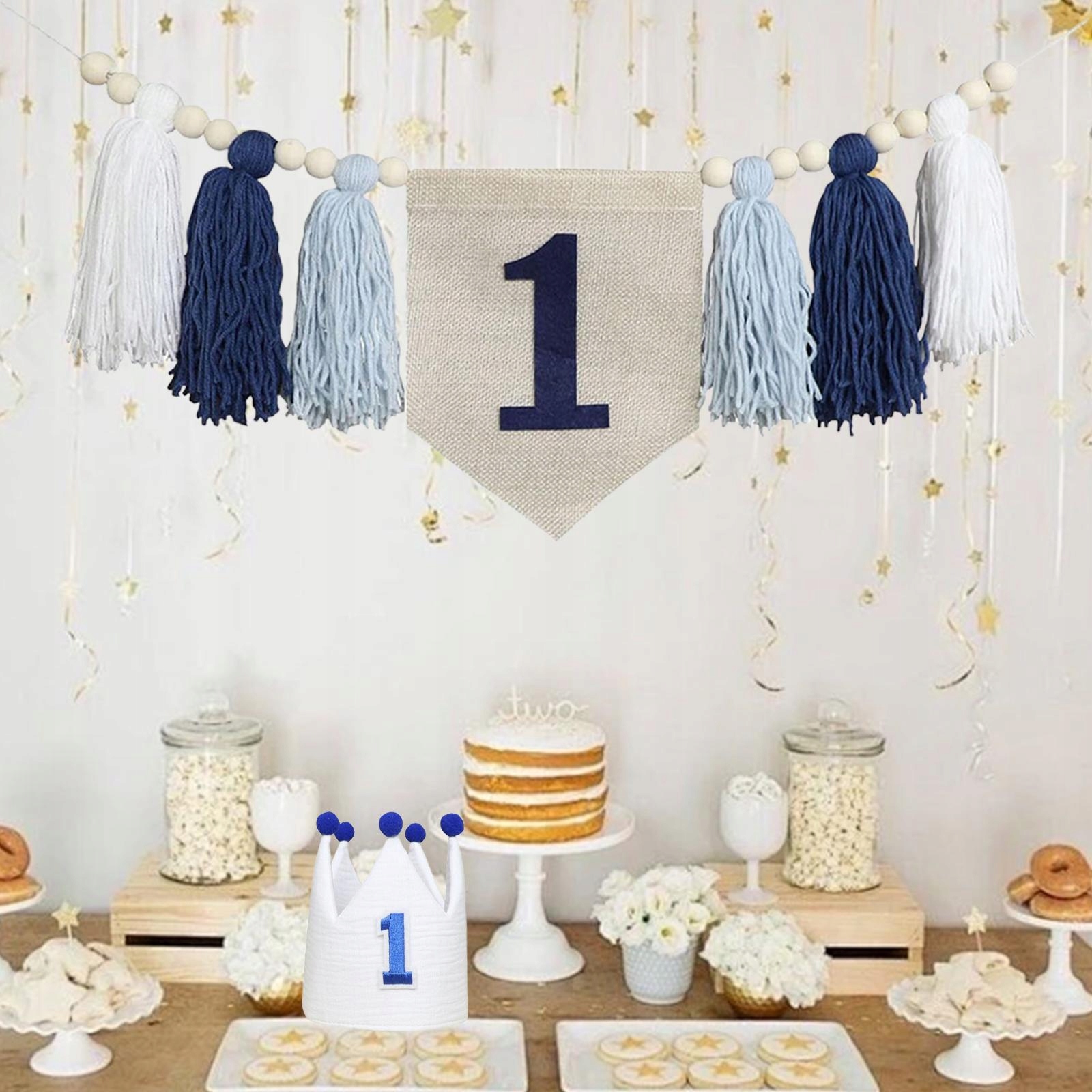 [Украшения для вечеринки с баннером на день рождения]: Используйте этот баннер от Chwost на стул и коронную шляпу, чтобы украсить и украсить первый день рождения вашего ребенка