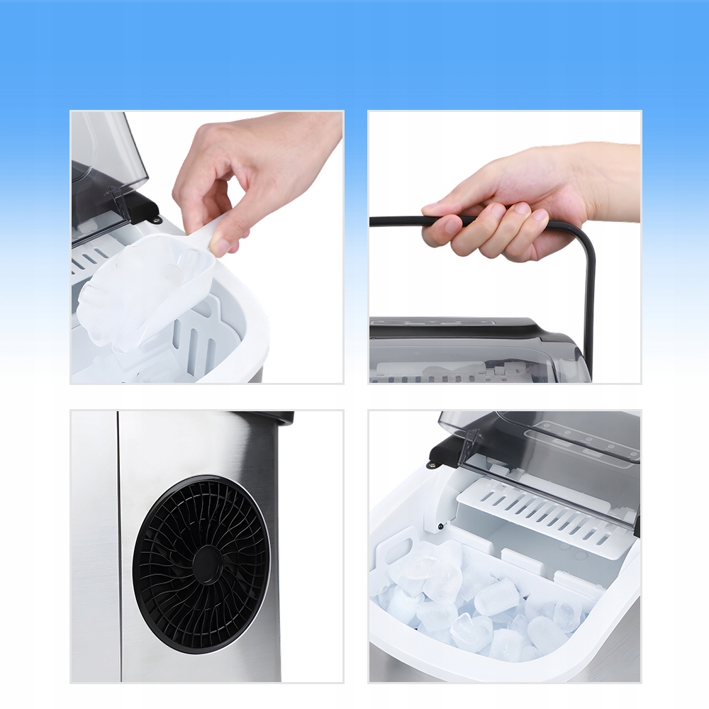 🍹 Легко в использовании - заполните ледяной машину водой, нажмите кнопку на включении, выберите размер кубиков льда. Индикаторный свет будет освещаться, когда в контейнере недостаточно воды или когда контейнер с льдом заполнен.