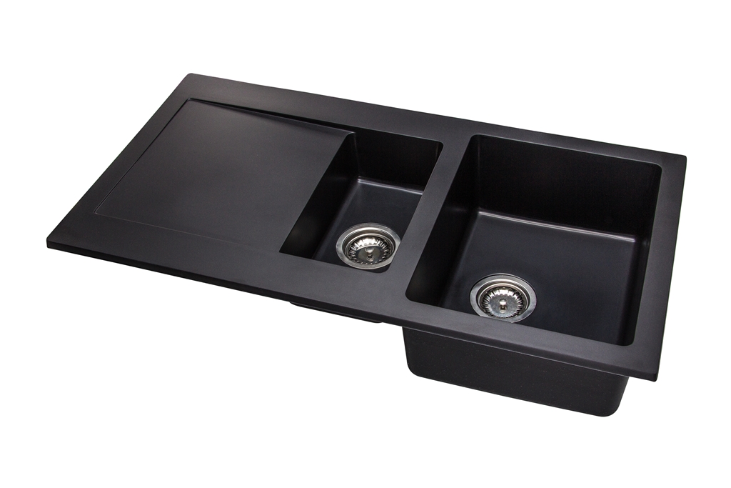 ГРАНИТНАЯ МОЙКА 1,5 КОЛОКОЛА, ЧЕРНЫЙ НАБОР