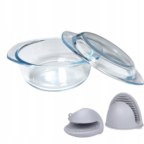 1,7 л овального тепло -устойчивого сосуда со стеклянной крышкой + силиконовые перчатки