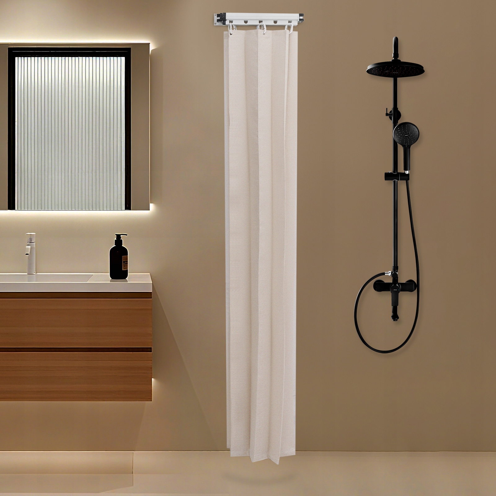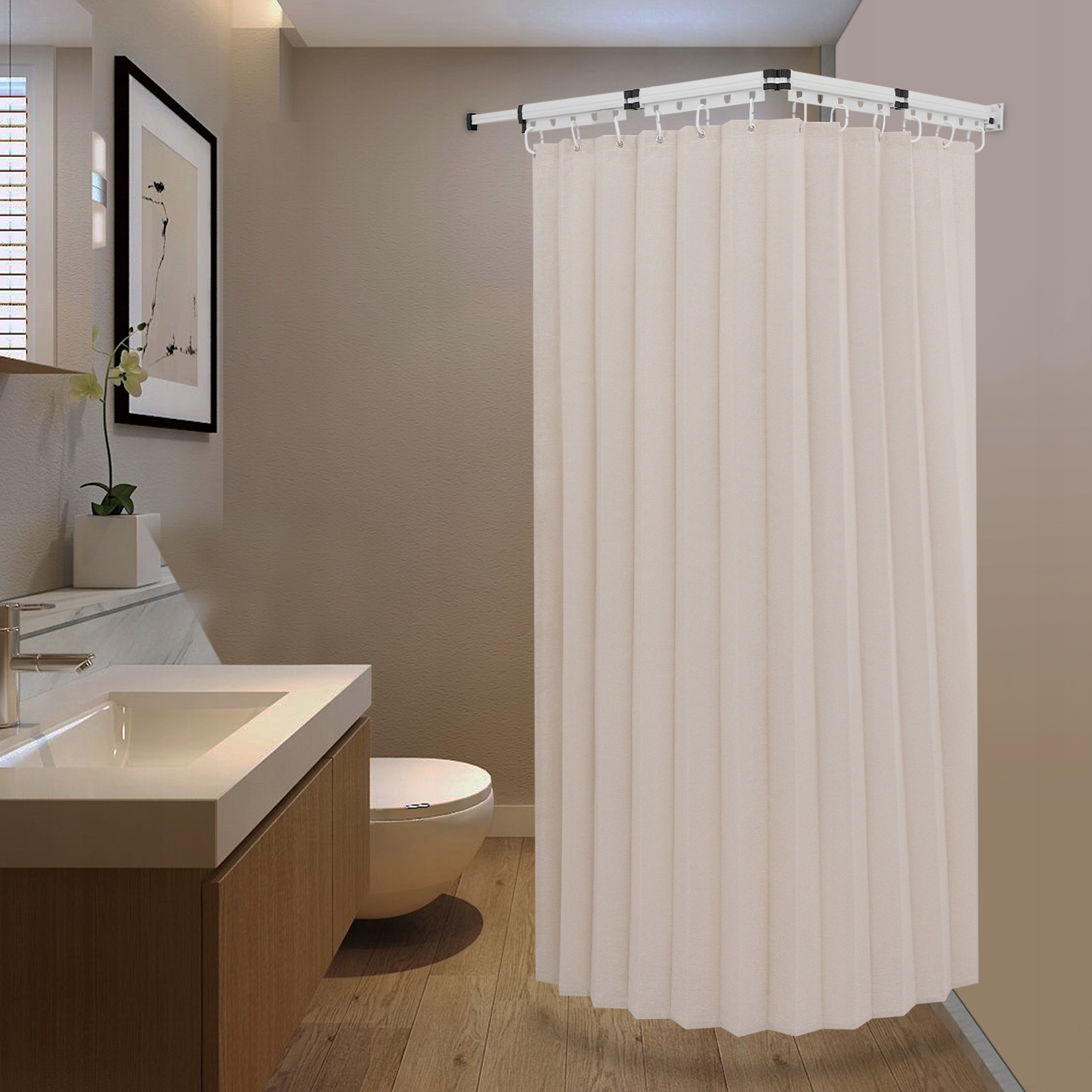 - Идеальное решение для разделения комнаты: В комплект входит непрозрачная занавеска, которая устанавливает окончательную визуальную границу, обеспечивая идеальную конфиденциальность для душа или другой комнаты. подразделение.