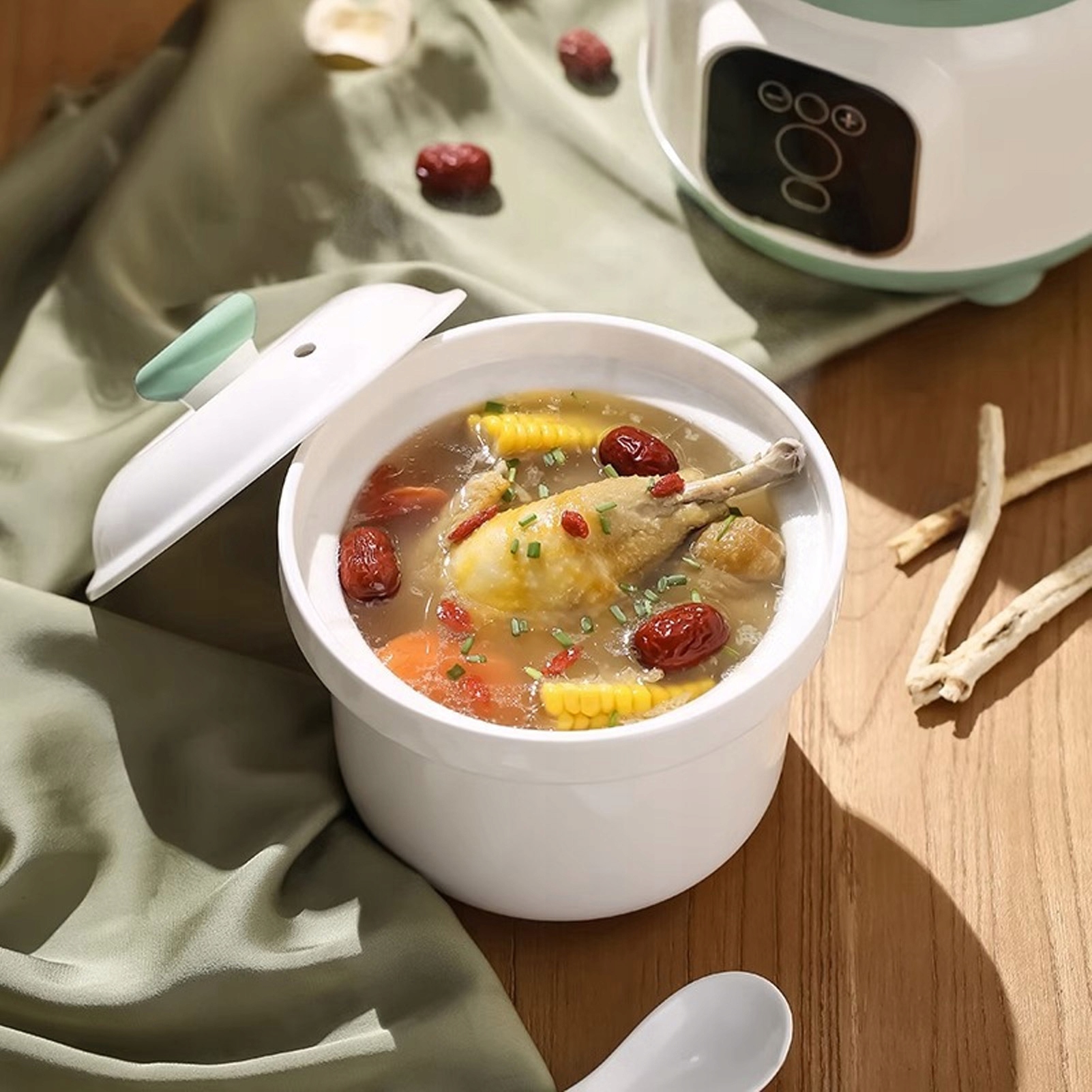5. Универсальное использование: оснащено керамической внутренней вставкой с крышкой, ложкой и корзиной для приготовления на пару, подходит для приготовления супа, отвара, приготовления десертов и т. д. для удовлетворения ваших разнообразных кулинарных потребностей.