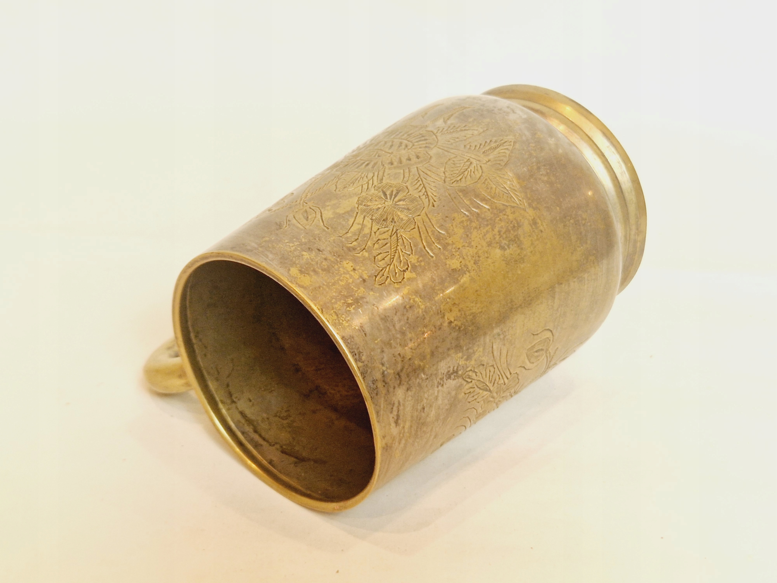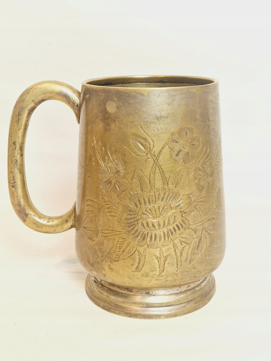 Кружка не подвергалась современной чистке - обнаженная латунь с оригинальной старой патиной.