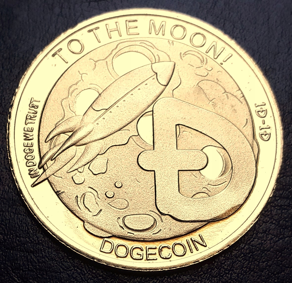 1 Dogecoin - Moneta fantazyjna , Pozłacana 24 karatowym złotem ,WYPRZEDAŻ