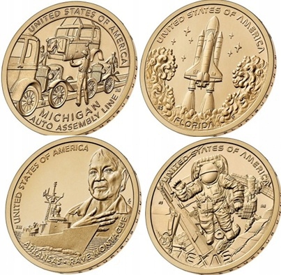Набор из 4 коллекционных монет номиналом 1 доллар (один доллар) 2025 года из серии «Американские инновации».