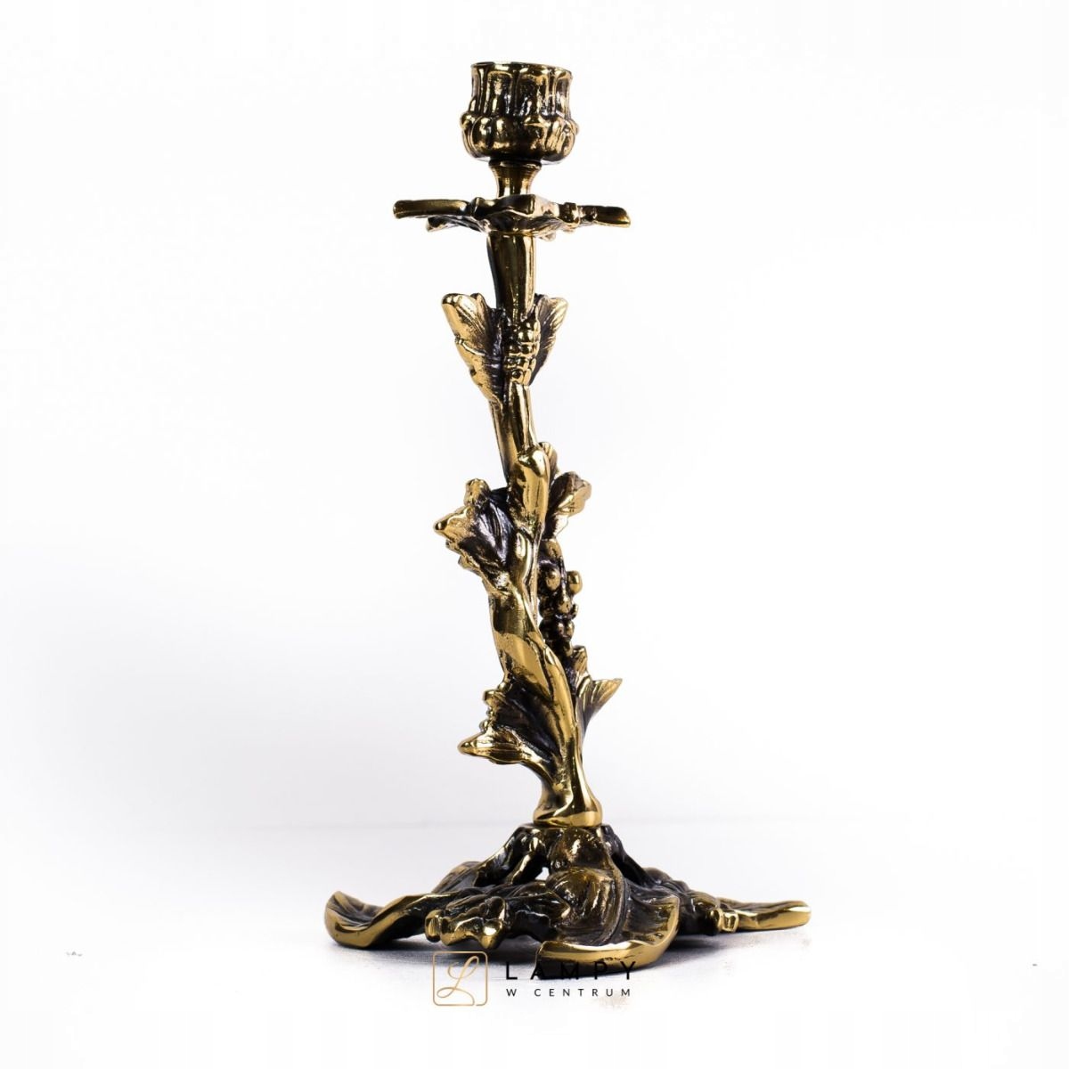 Маленький - это красиво, примером этого может быть один пылающий свечу, представленную на нашем аукционе. Подсвечник, сделанный из медного кастинга, изображающий стебель для скалолазания, увенчанный сокетом свечей. Основание в форме трех листьев распространяется вокруг. Подсвечник держался в древнем характере, отполированном в обнаженных местах, темных в уголках и черепах. Оригинальный дизайн продукта делает его отличным в традиционных и современных интерьерах. Местный держатель свечи был покрыт лаком для предотвращения окисления латуни.