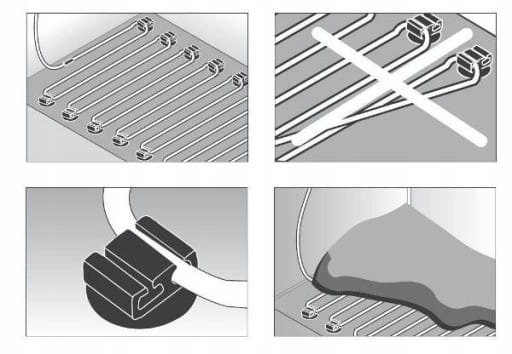Кабель идеально подходит для обогрева снизу одного террариума или набора резервуаров для разведения. Закрепите кабель под нижней частью террариума с помощью кусочков изоленты. Кабель нельзя перекрещивать и прокладывать петли. Прокладываемый кабель не должен сильно перегибаться, наименьший радиус поворота – 5 см. Защищайте кабель от защемления краем террариума. Ножки следует расположить под углами террариума, чтобы создать пространство, в котором воздух может свободно циркулировать, что предотвращает повреждение кабеля, террариума, мебели и перегрев животных. Только для использования в стеклянных террариумах.
