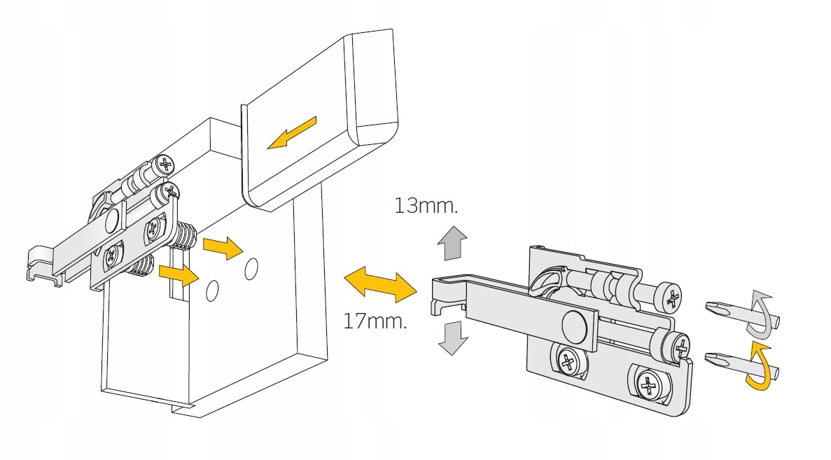 Вешалка предназначена для крепления верхних шкафов на монтажную рейку. Благодаря высокой подъемной силе позволяет подвешивать мебель различных размеров.