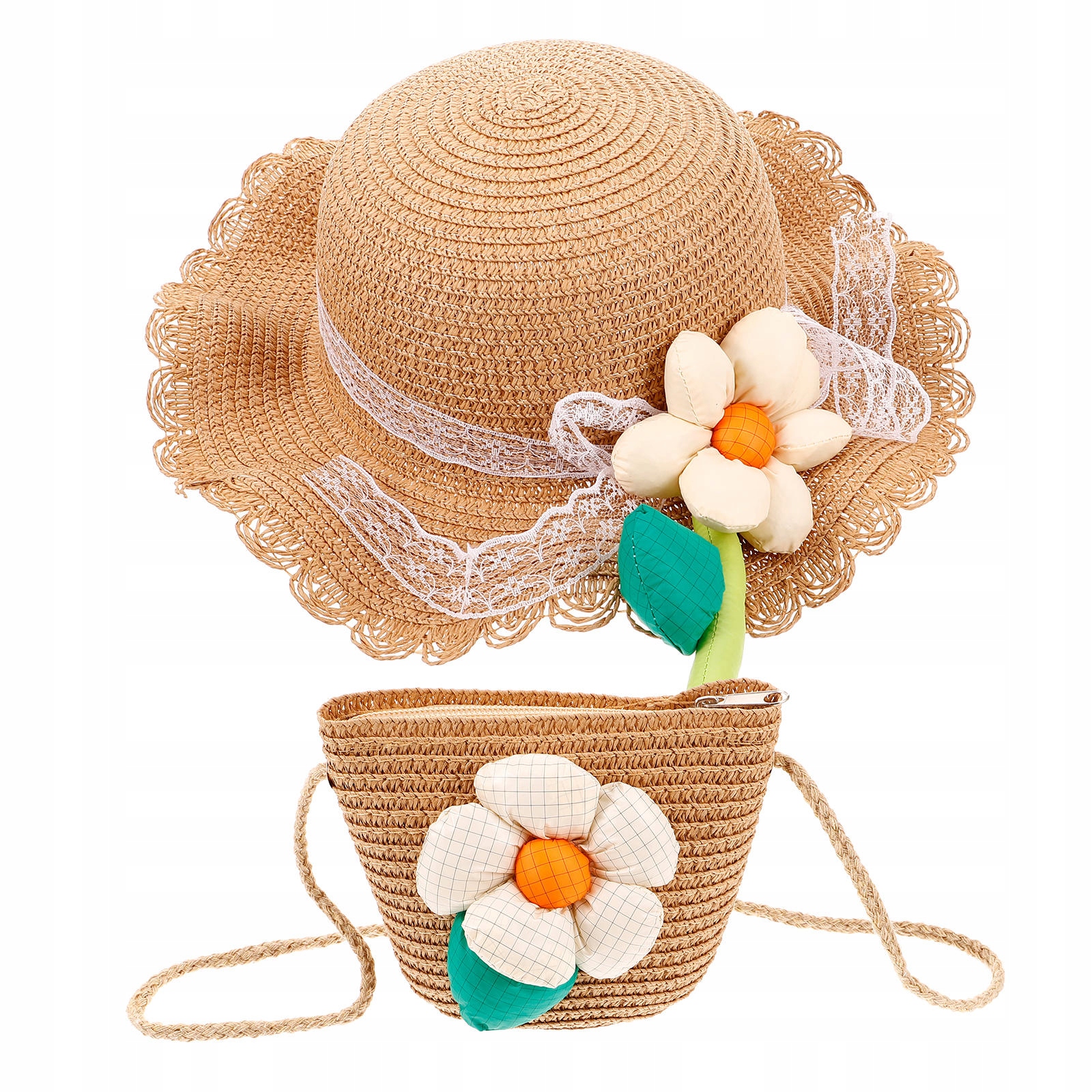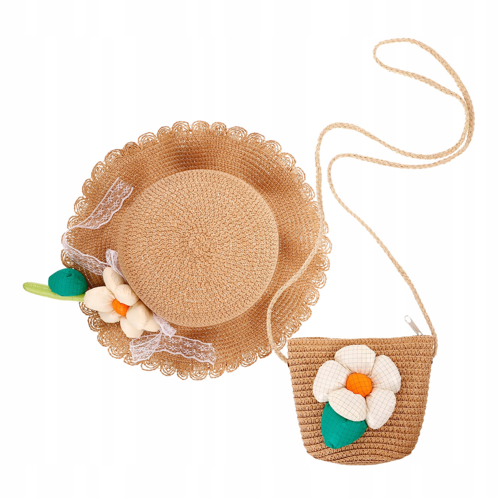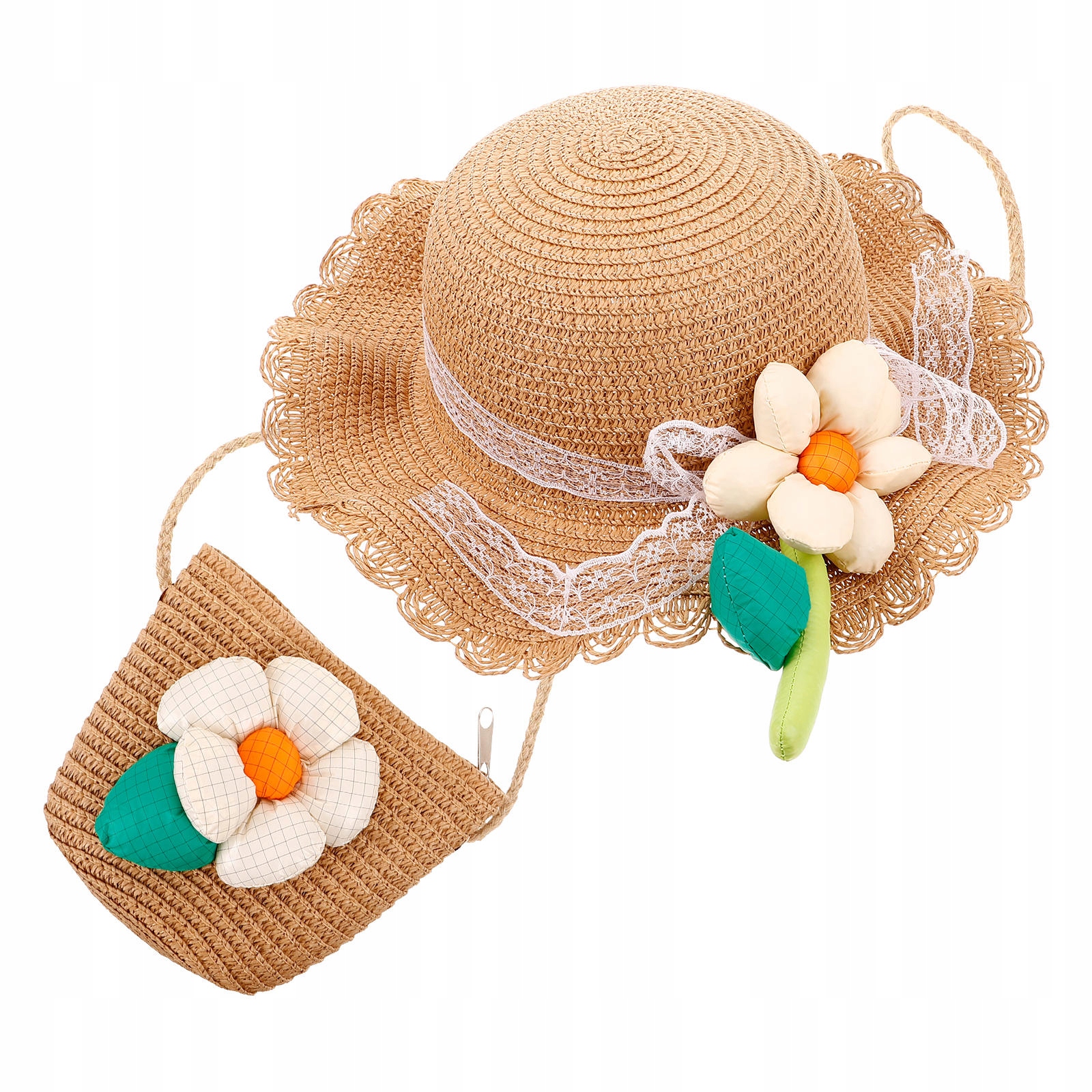 1 КОМПЛЕКТ ДЕТСКАЯ ПЛЯЖНАЯ ШЛЯПА ОТ СОЛНЦА ТКАНАЯ С ПЛЯЖНОЙ СУМКОЙ