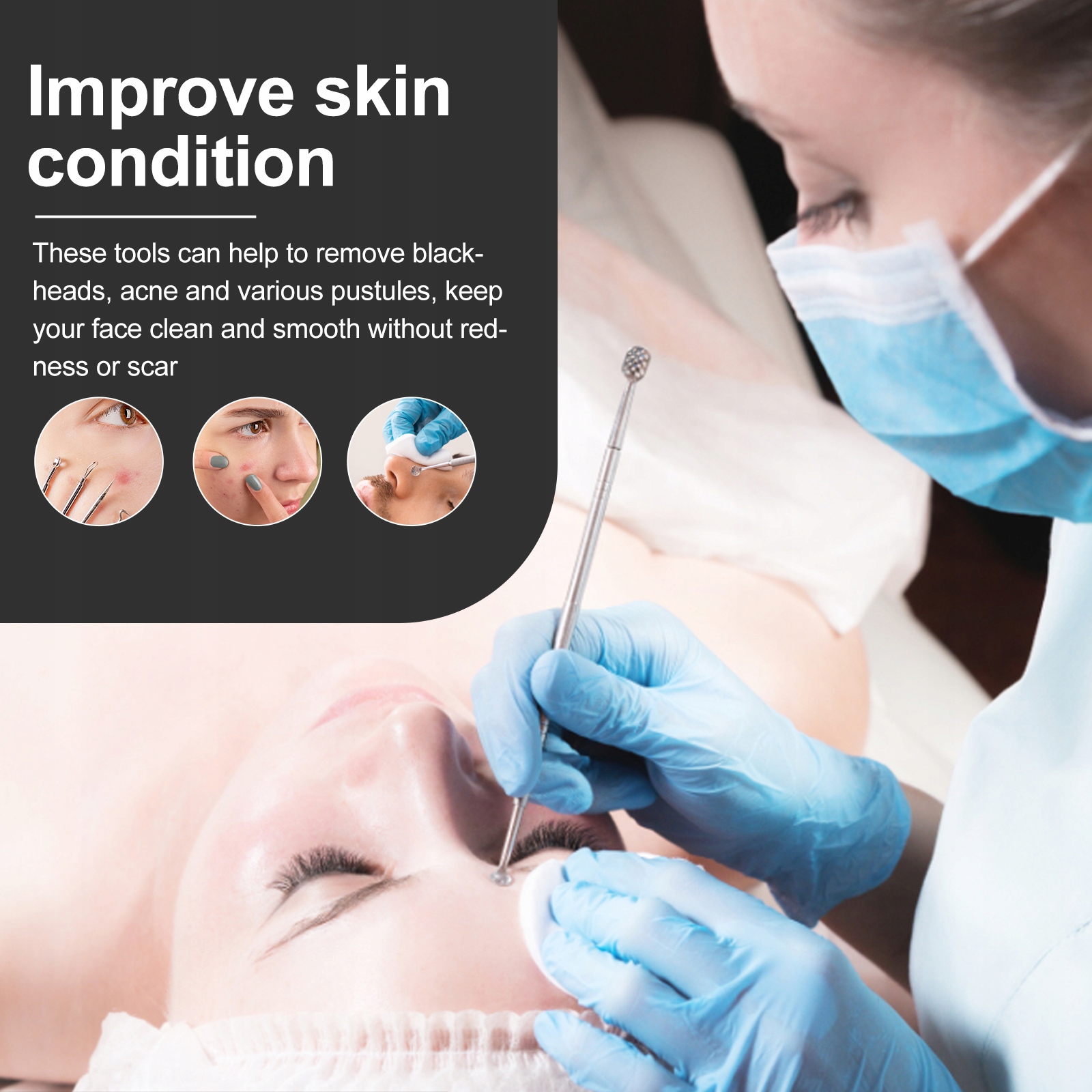 ✅Это набор инструментов для чистки, изготовленный из высококачественной нержавеющей стали, прочный для длительного использования. Эти средства помогут удалить черные точки и различные прыщики, сохранить лицо чистым и гладким, без покраснений и шрамов. Это также может быть подарок для друзей.