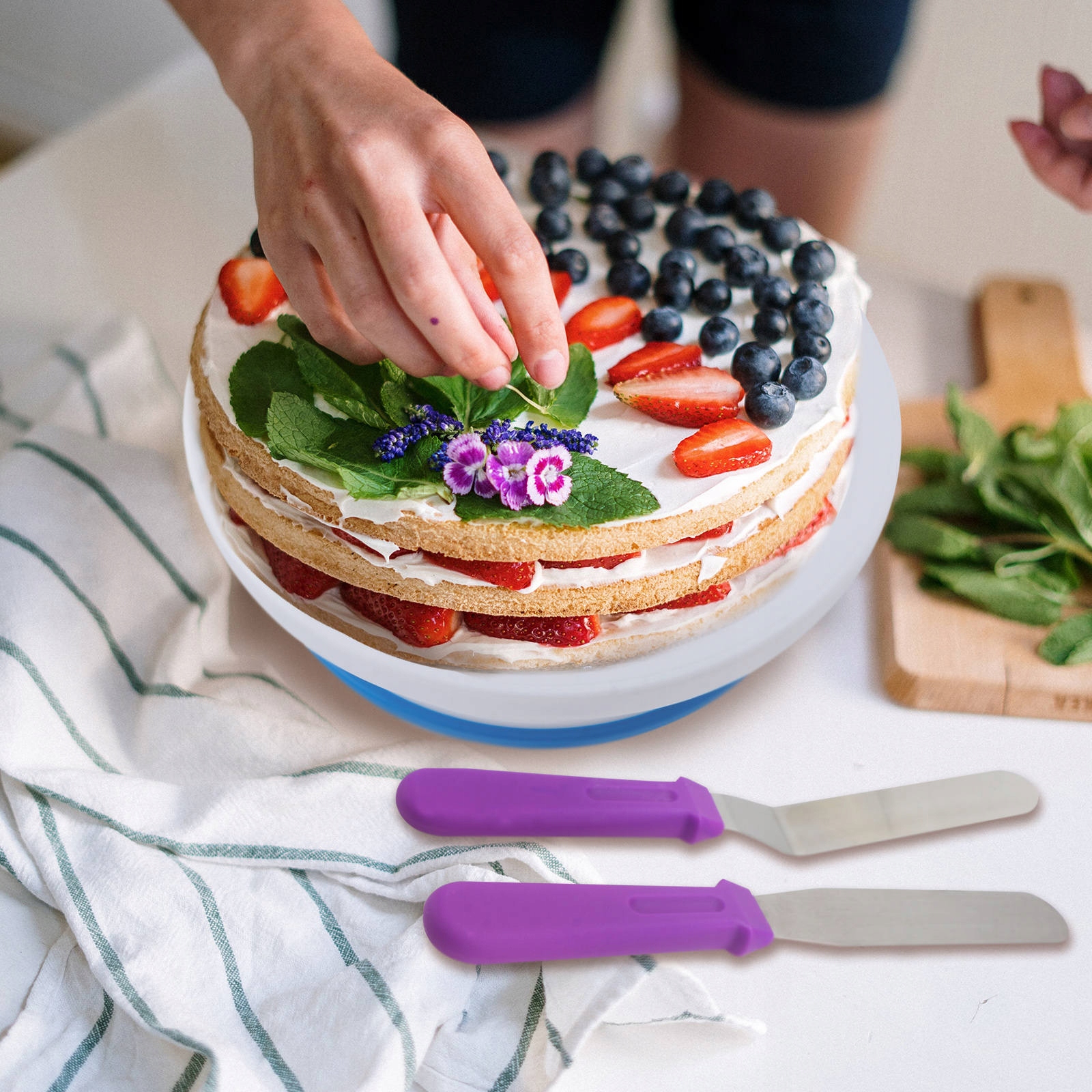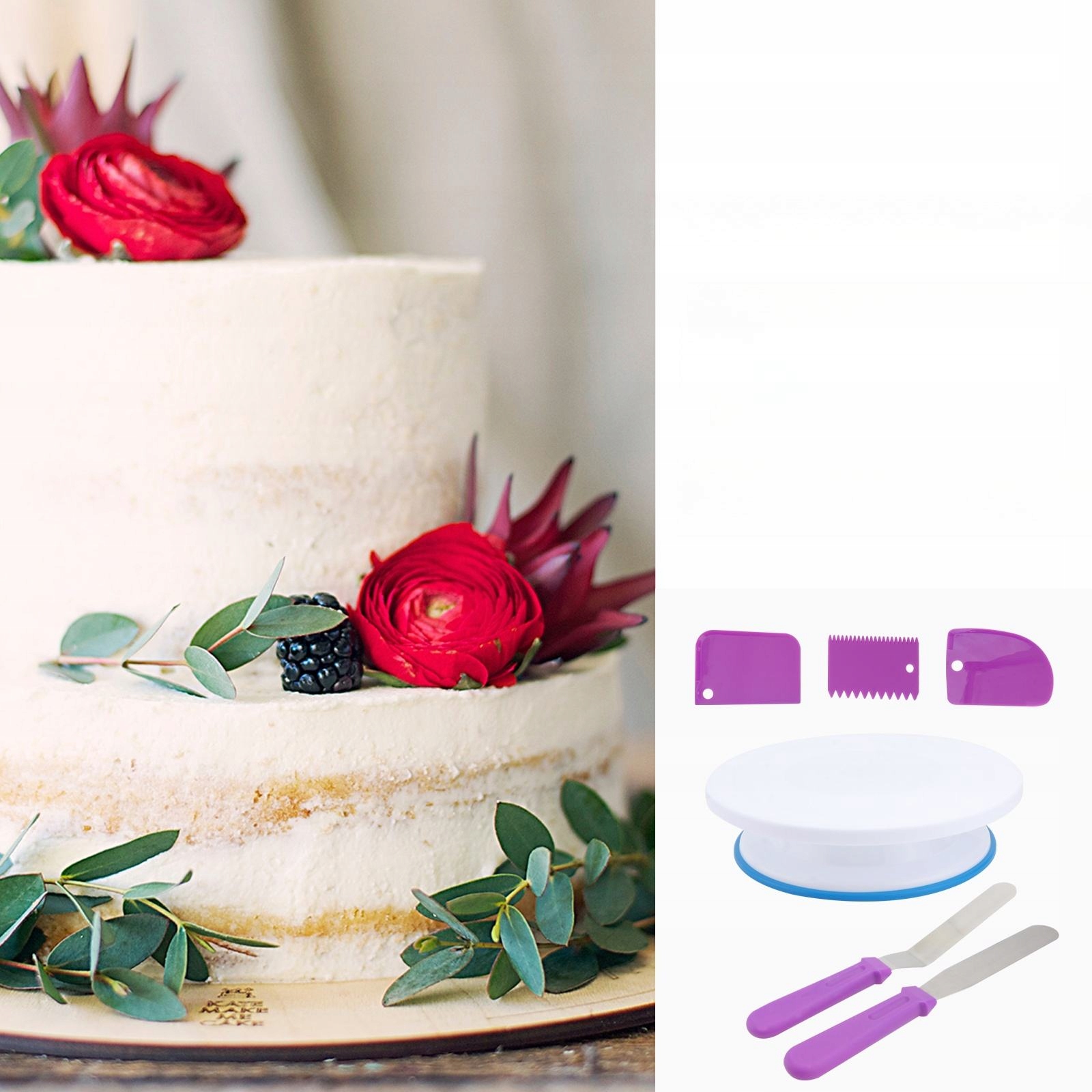 ✅Поворотный стол с противоскользящим покрытием более удобен для приготовления тортов.