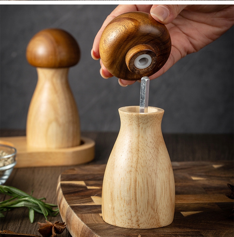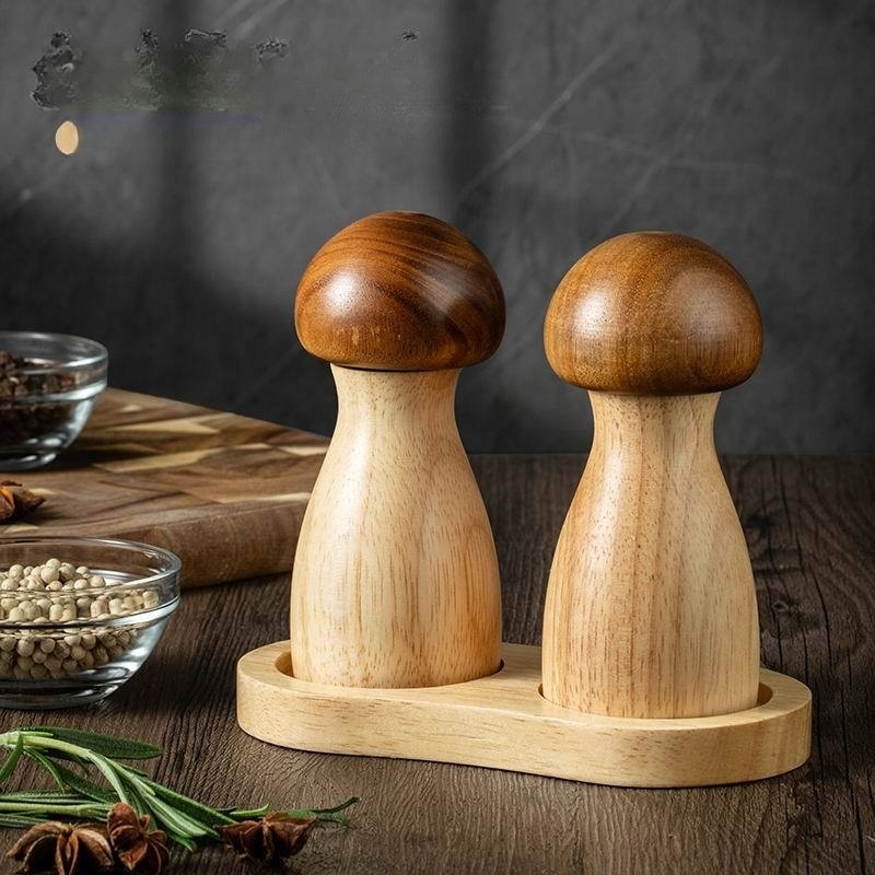 1 КОМПЛЕКТ РЕГУЛИРУЕМОЙ ДЕРЕВЯННОЙ ГРИБНОЙ ПЕРЕЦ, РУЧНАЯ СОЛЬ И ПЕРЕЦ