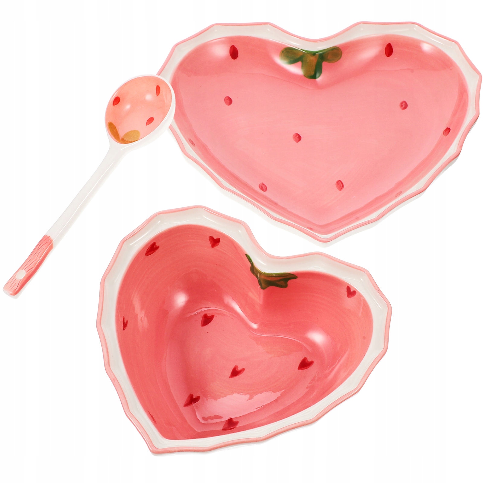 1 КОМПЛЕКТ РОЗОВЫХ КЕРАМИЧЕСКИХ ТАРЕЛОК И ЛОЖЕК ДЛЯ ПОДАЧИ САЛАТА