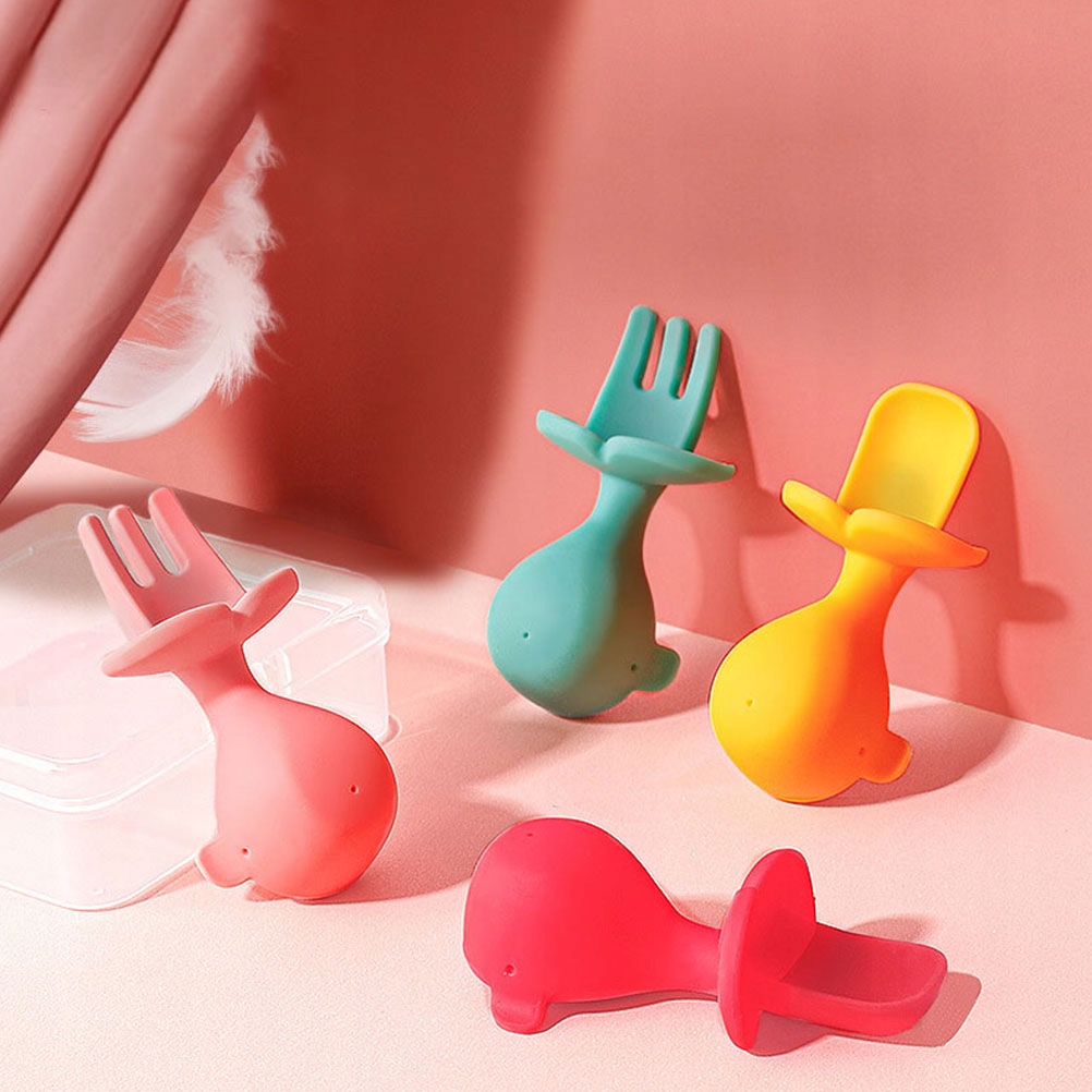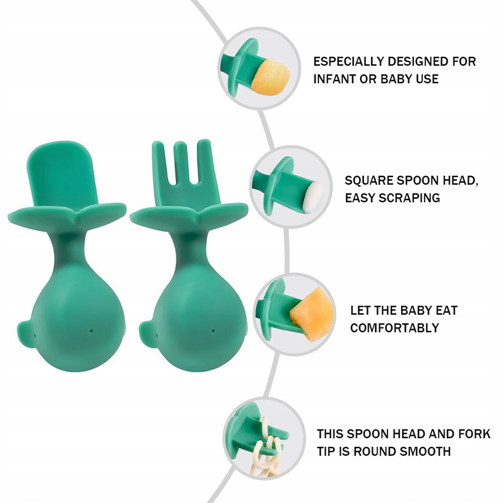 Насадка ложки и кончик вилки круглые, гладкие, что позволяет ребенку есть с комфортом.