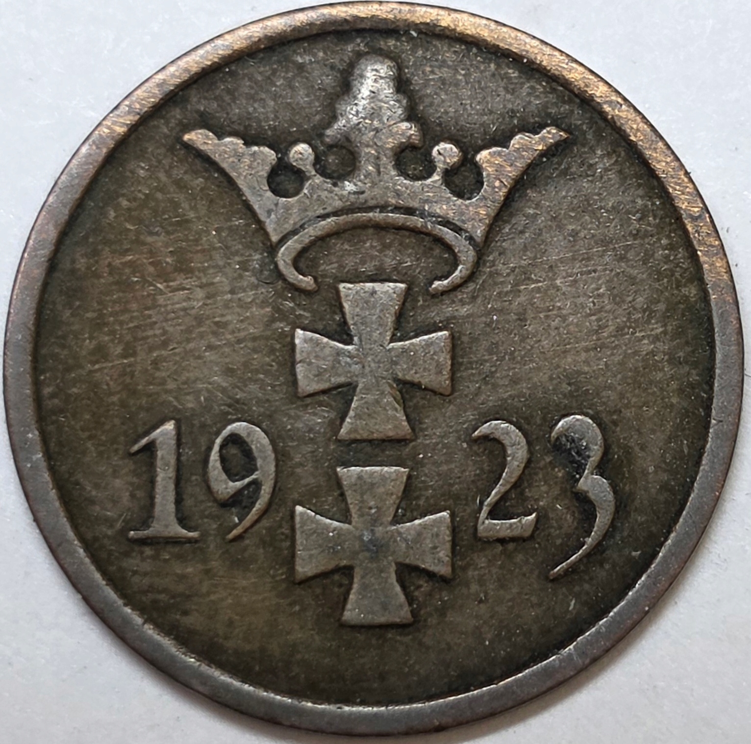 1 грош пфенниг Вольный город Гданьск 1923 года, интересная редкая монета S246