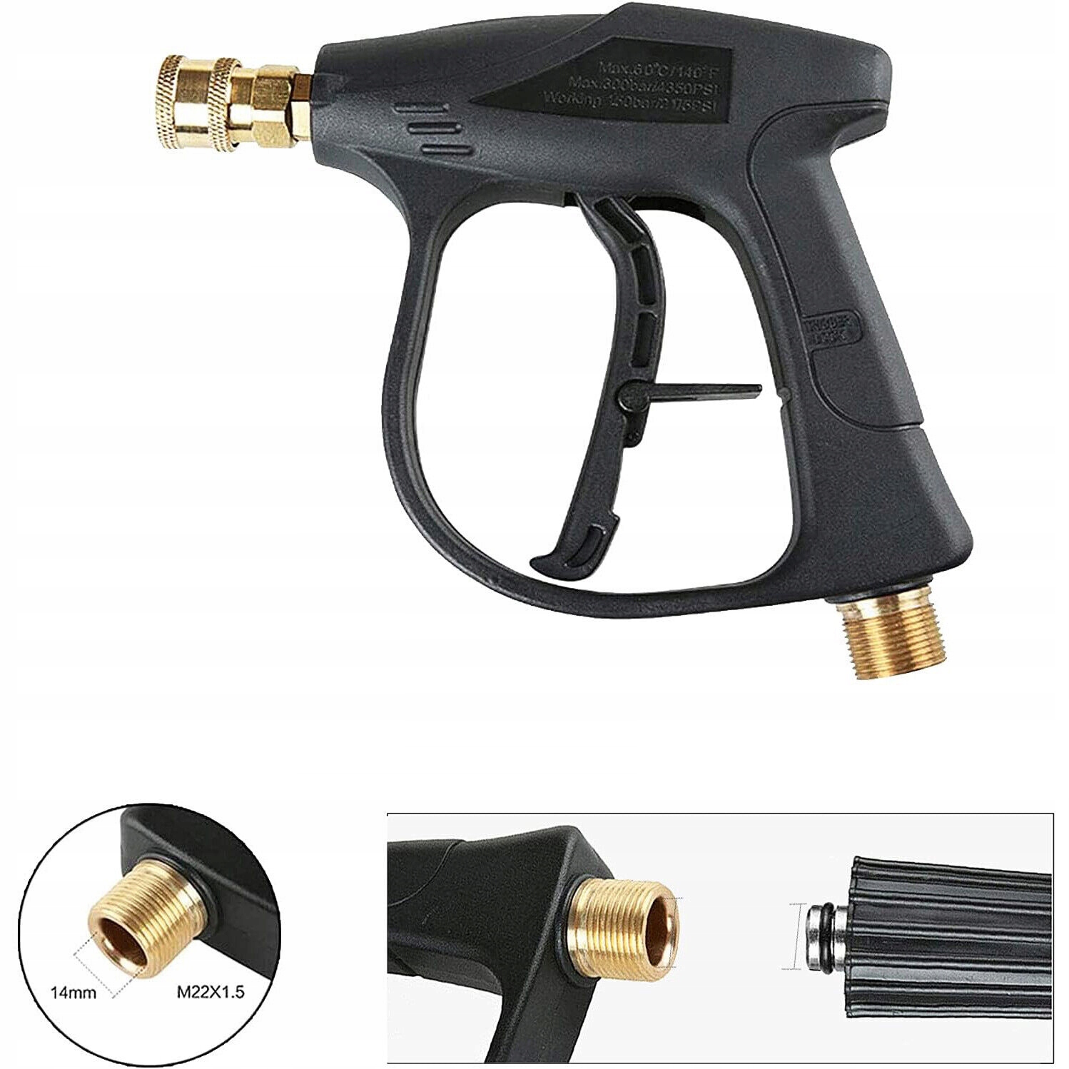 ❤ Примечание: не соответствует садовому шлангу или водящему шлангу. Ядро пистолета с высоким давлением и пенопластовым копейным ядром изготовлена из прочной латуни. Пистолет имеет нить M22-14. Регулируемая пена копья с быстрым разъемом. Требуется стиральная машина для давления свыше 1400 фунтов на квадратный дюйм, максимальное давление: 4000 фунтов на квадратный дюйм. Максимум 140 градусов F емкость: 1 л.
