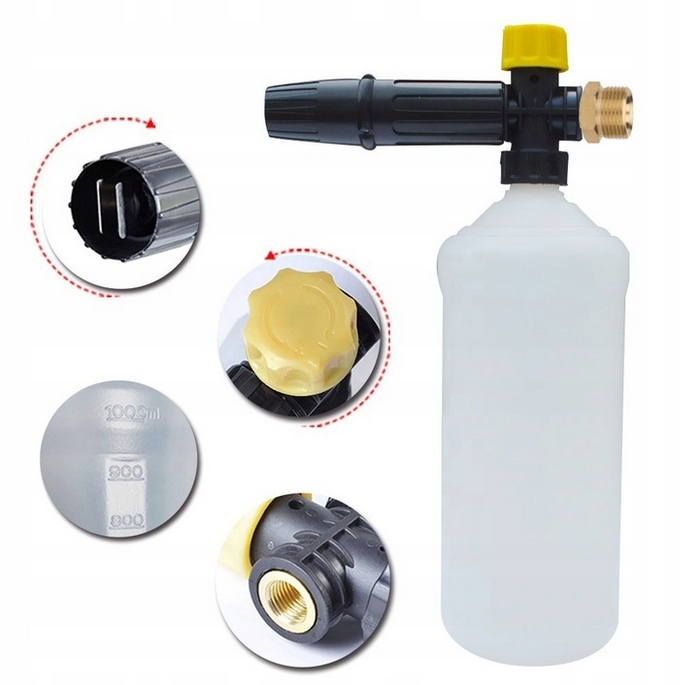 Аппликатор для пены имеет регулируемый угол струи воды с помощью пены и количества химического введения. Он крепится к пистолету, благодаря чему мы обходим внутреннюю циркуляцию в моечной машине и агрессивные химикаты не попадают в контакт с компонентами стиральной машины, исключая угрозу повреждения, например, головки насоса.