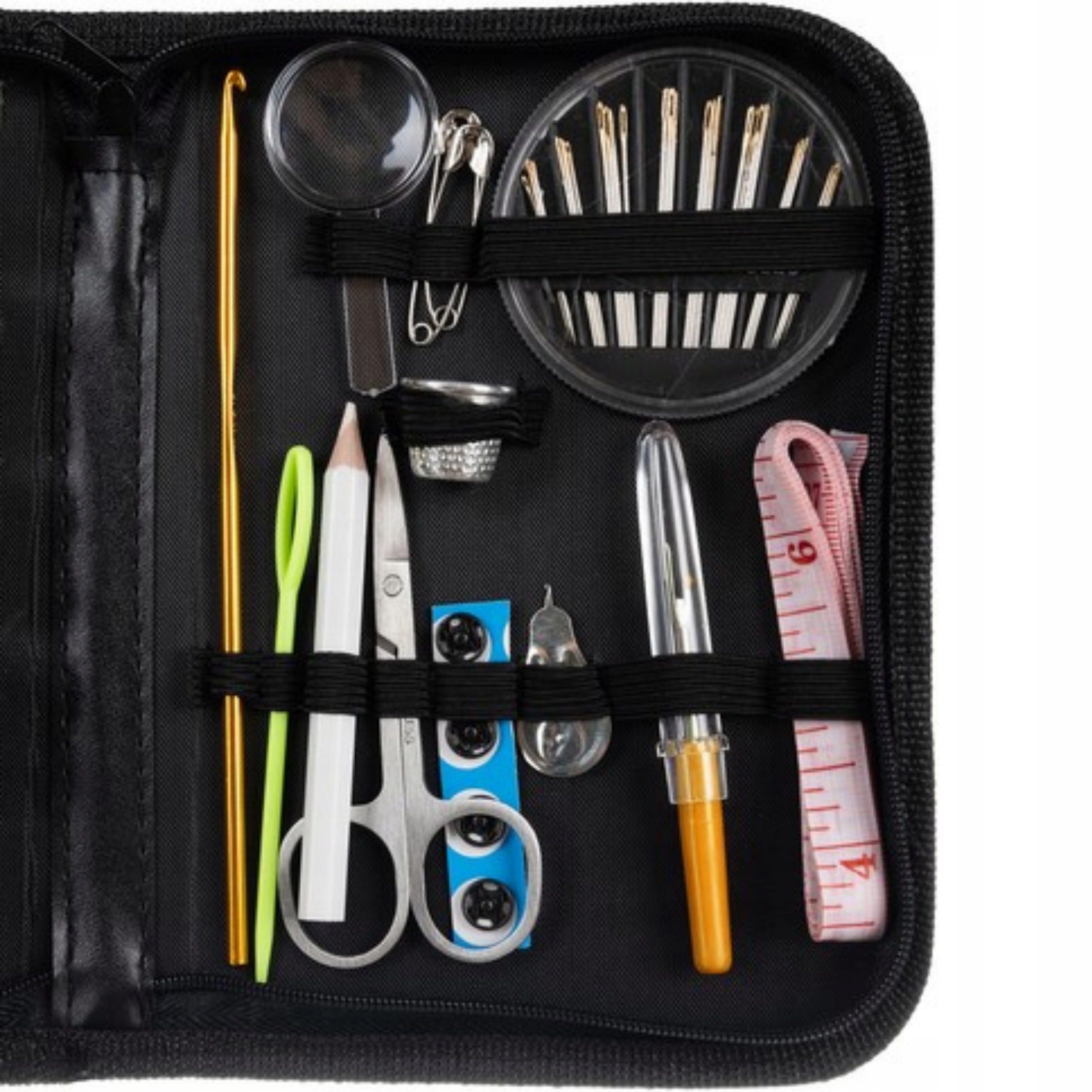 - case - все закрыто в черном чехле из высококачественных материалов - организатор. Спасибо этому, вы можете продолжать шить в одном месте. Вы можете легко положить их в кошелек или рюкзак и взять с собой в поездку.